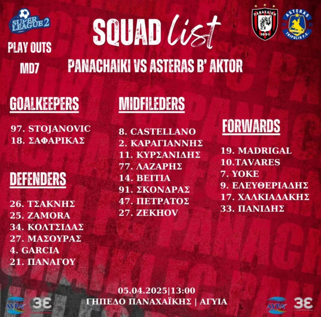 Η αποστολή της Παναχαϊκής για την εντός έδρας αναμέτρηση με τον Αστέρα Β’ Aktor