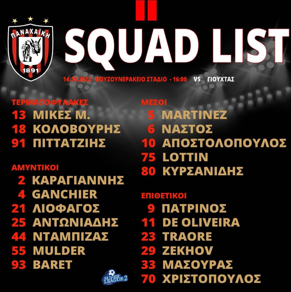 Η αποστολή της Παναχαϊκής για τον αγώνα με τον Γιούχτα