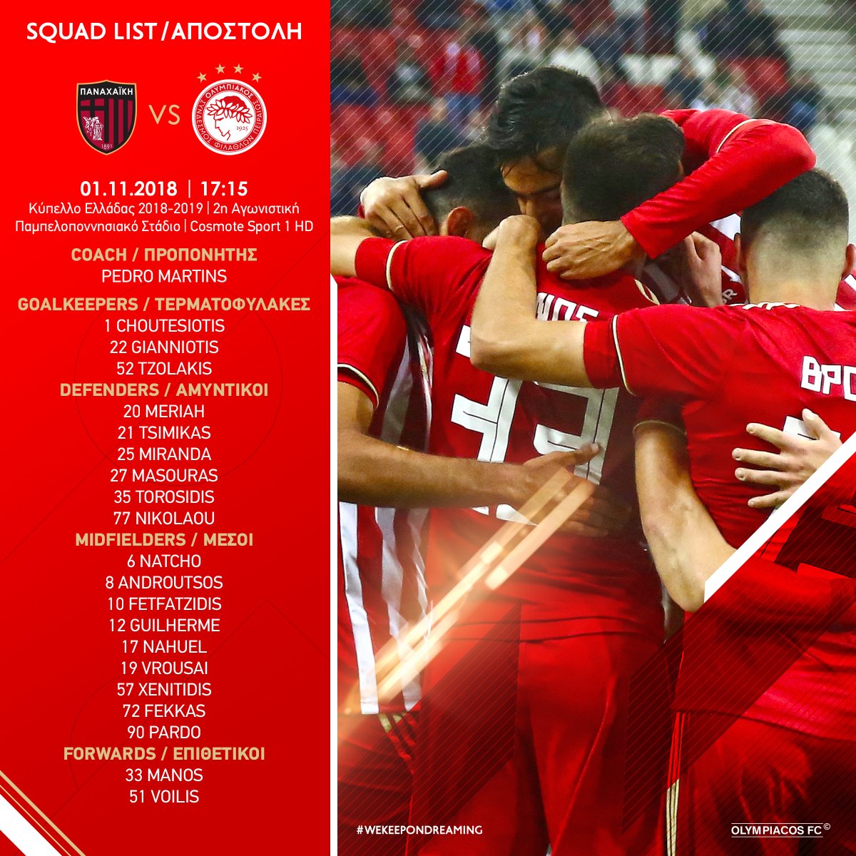 Η ΠΑΕ Ολυμπιακός ανακοίνωσε επίσημα την αποστολή της για τον αυριανό αγώνα Κυπέλλου Ελλάδος με την Παναχαϊκή και σε αυτήν δεν βρίσκεται ο Γιάγια Τουρέ.