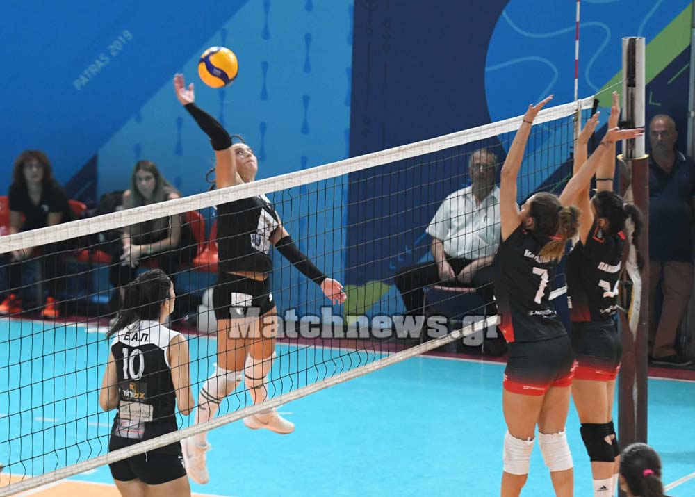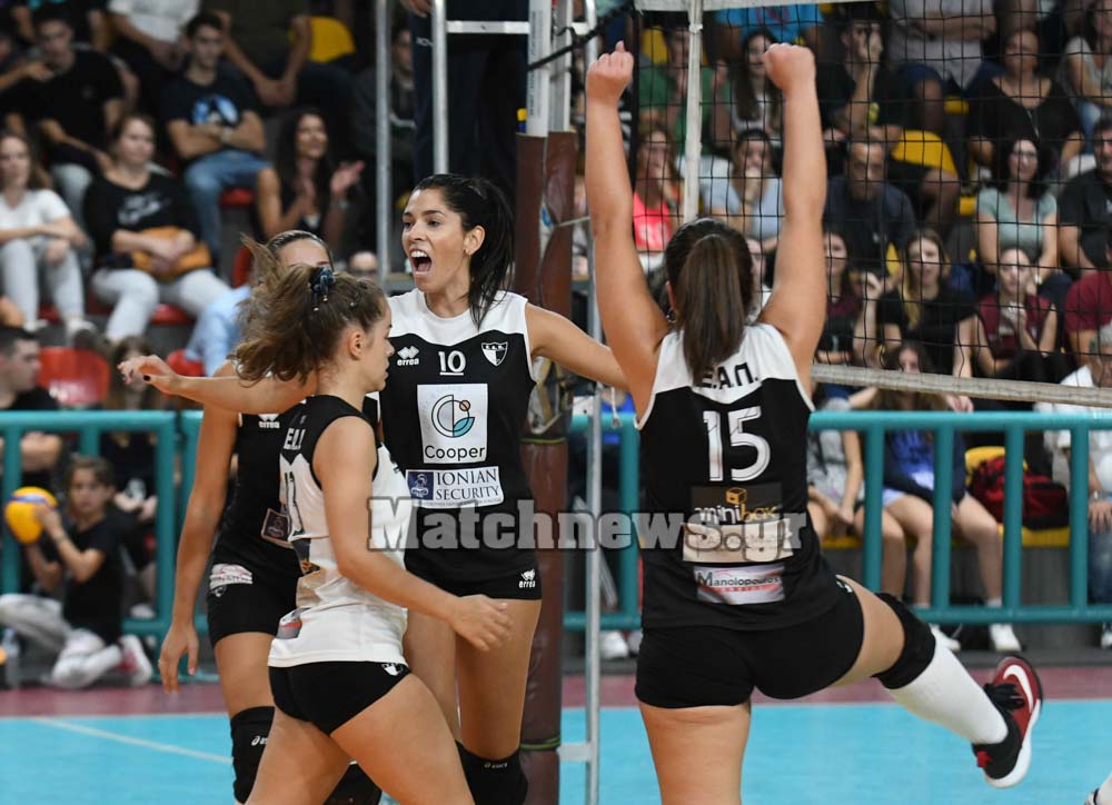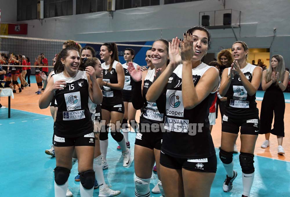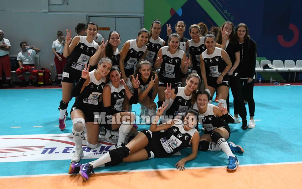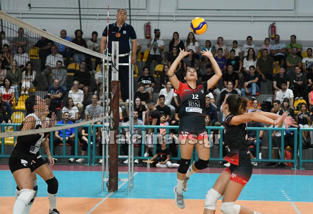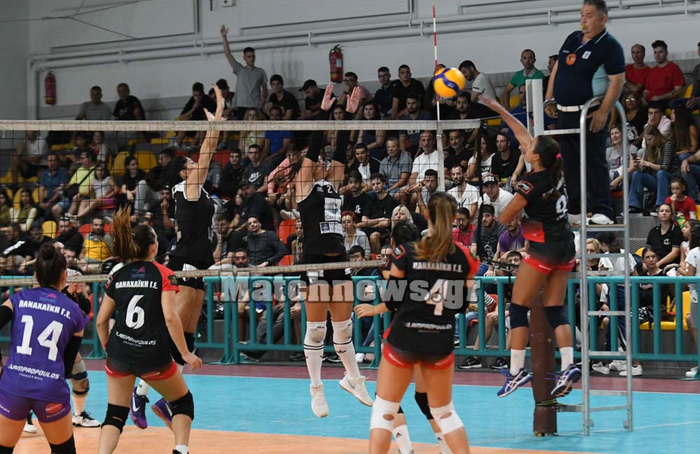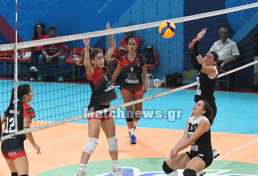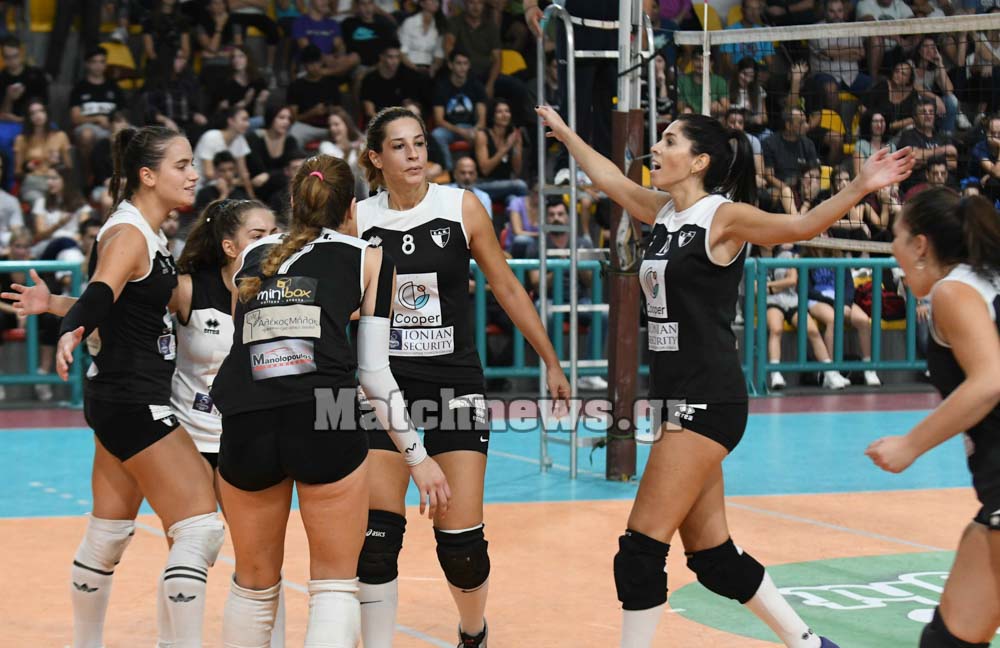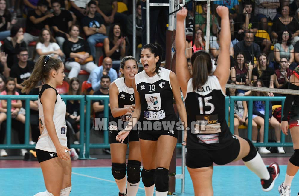 Στο πρώτο σετ, με «όπλο» το καταπληκτικό σερβίς της Παγωμένου και με τα «φονικά» πλασέ της Μαριώτας Αγγελοπούλου (σερί 7-0, 11-5), η Παναχαϊκή φρόντισε να βάλει από νωρίς τις βάσεις για να το κατακτήσει και το κατάφερε με 24-15.