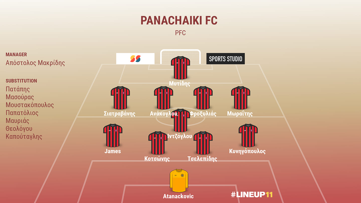 Ατανάκοβιτς, Τσελεπίδης, Κοτσώνης, Σταμόπουλος, Κυνηγόπουλος, Ιντζόγλου, Φροξυλιάς, Ανάκογλου, Σιατραβάνης, Ανάκογλου, Μωραϊτης, Μυτίδης.