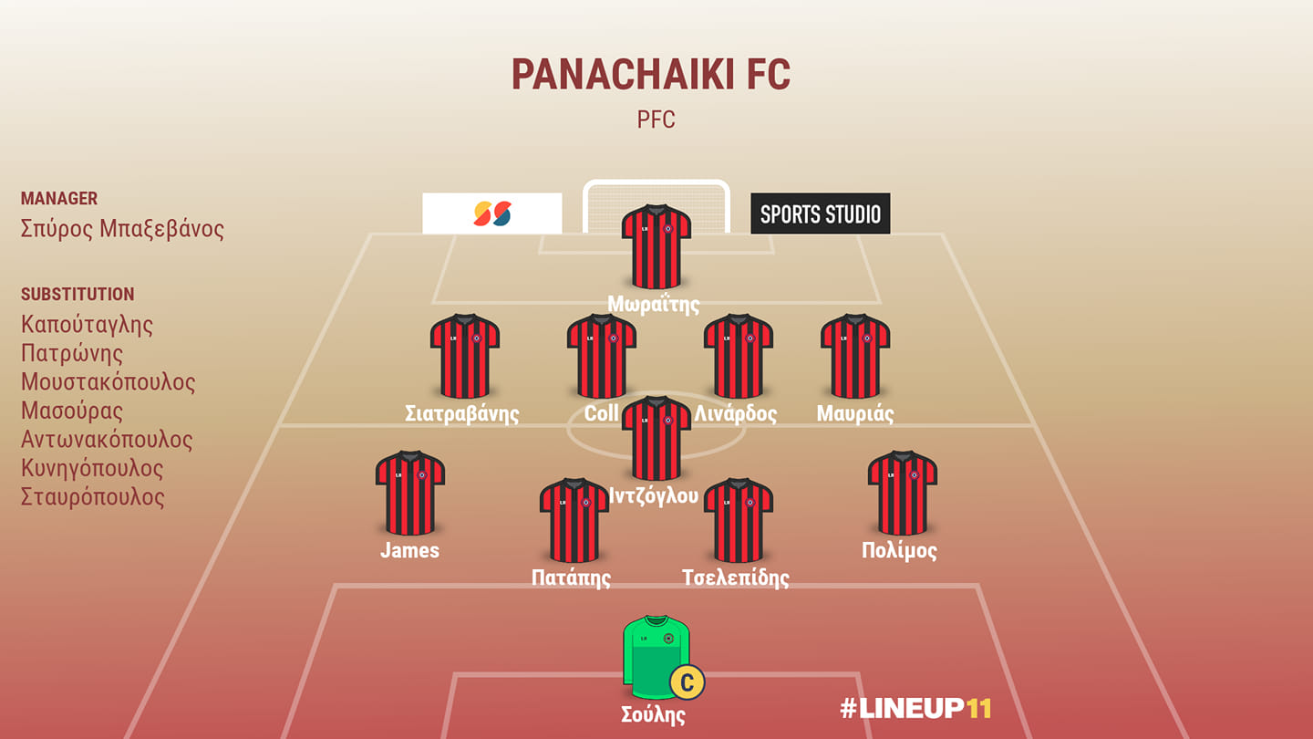 Αναλυτικά: Σούλης, Σταμόπουλος, Πολίμος, Πατάπης, Τσελεπίδης, Ιντζόγλου, Μαυριάς, Λινάρδος, Κολ, Σιατραβάνης Μωραϊτης.