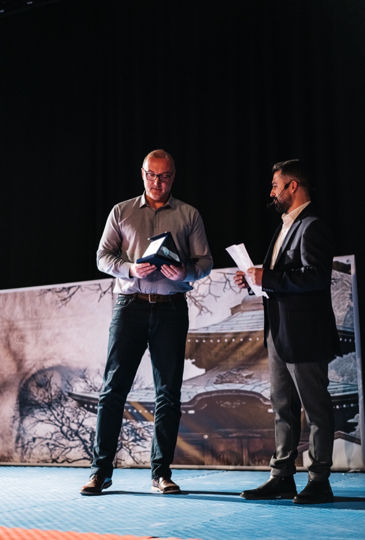 Μάλιστα, ο περιφερειακός διευθυντή της Nestlè οποίος κέρδισε το μεγαλύτερο χειροκρότημα στην απονομή της μαύρης ζώνης.
