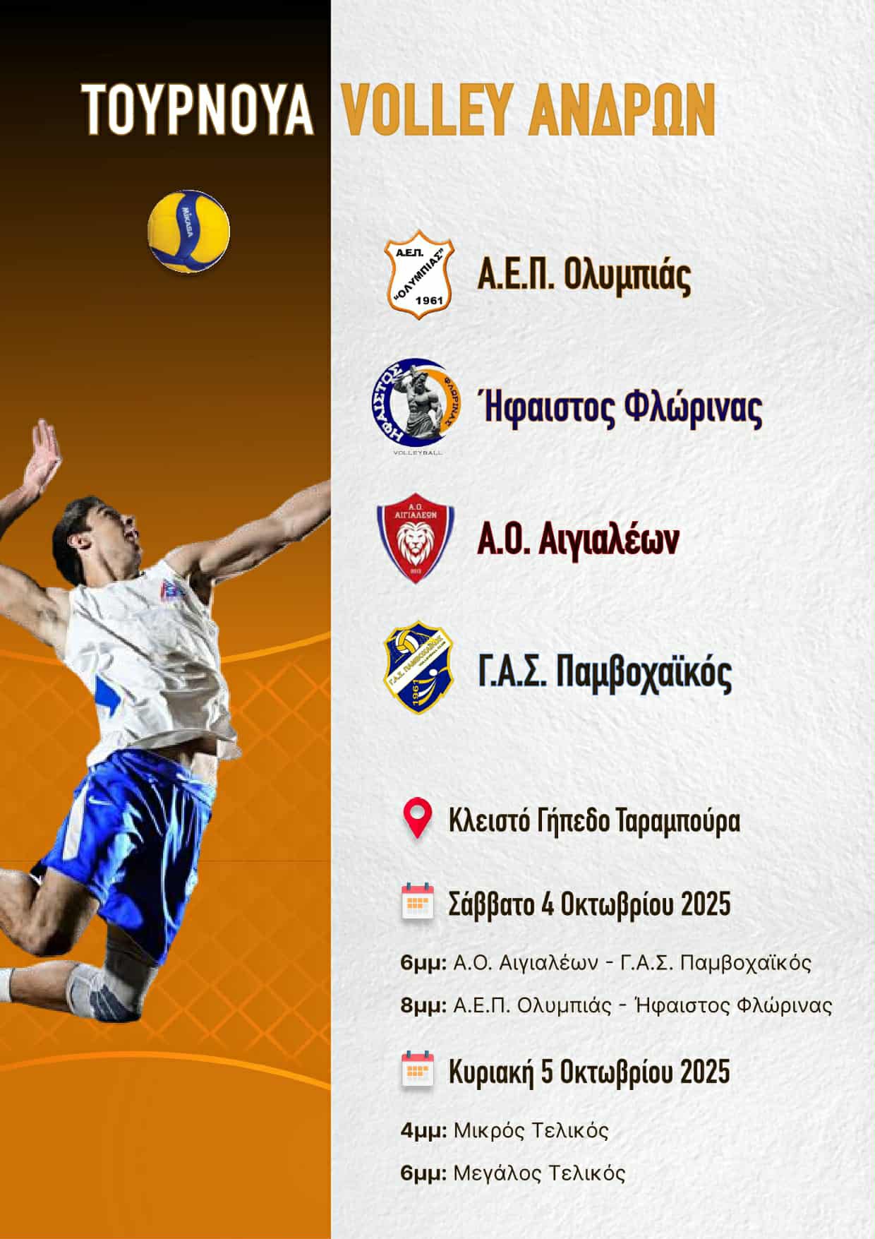Λίγες ημέρες πριν την επίσημη έναρξη του πρωταθλήματος βόλεϊ της Α2 Εθνικής και πιο συγκεκριμένα το Σαββατοκύριακο 4-5 Οκτωβρίου, η Ολυμπιάδα θα φιλοξενήσει στο γήπεδό της ένα δυνατό τουρνουά, στο οποίο θα συμμετάσχουν εκτός από τους «πορτοκαλί», ο Αιγιαλέων, ο Ήφαιστος Φλώρινας και ο Παμβοχαϊκός.