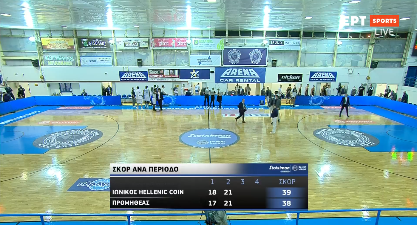 Μετά το πέρας δυο περιόδων, η ομάδα του Μάκη Γιατρά βρίσκεται πίσω στο σκορ με 39-38.