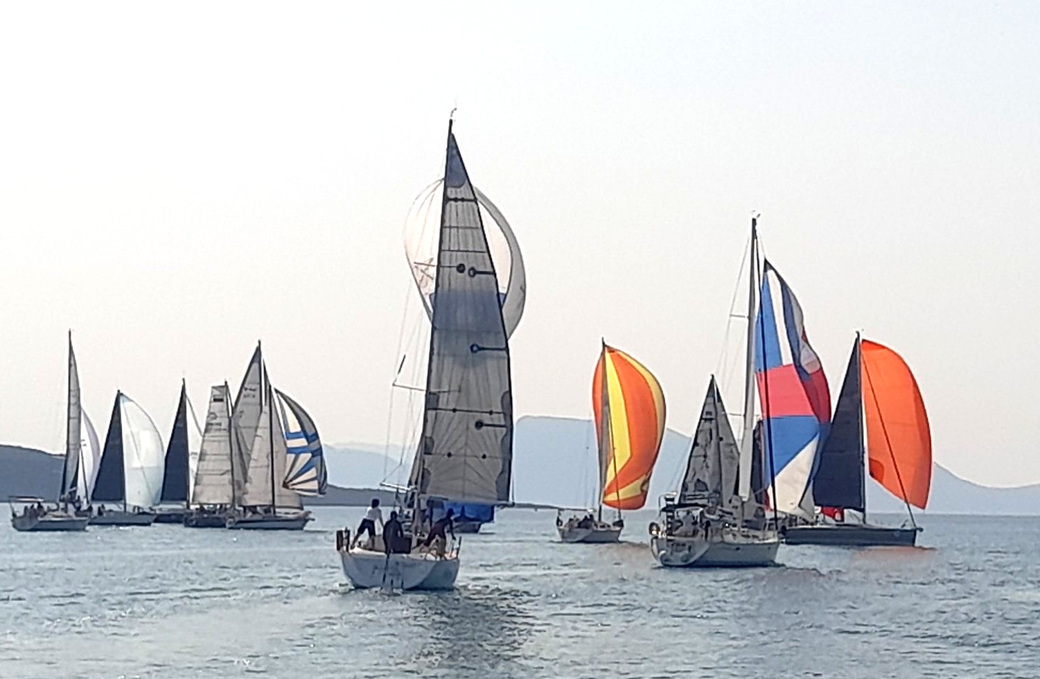 Ο άνεμος έπνεε από 290 μοίρες με ένταση 11 μιλίων και τα σκάφη έφυγαν πρίμα νότια με μπαλόνια, γεμίζοντας το γαλάζιο της θάλασσας με όλα τα χρώματα του κόσμου, αφού τα μπαλόνια είναι πολύχρωμα.