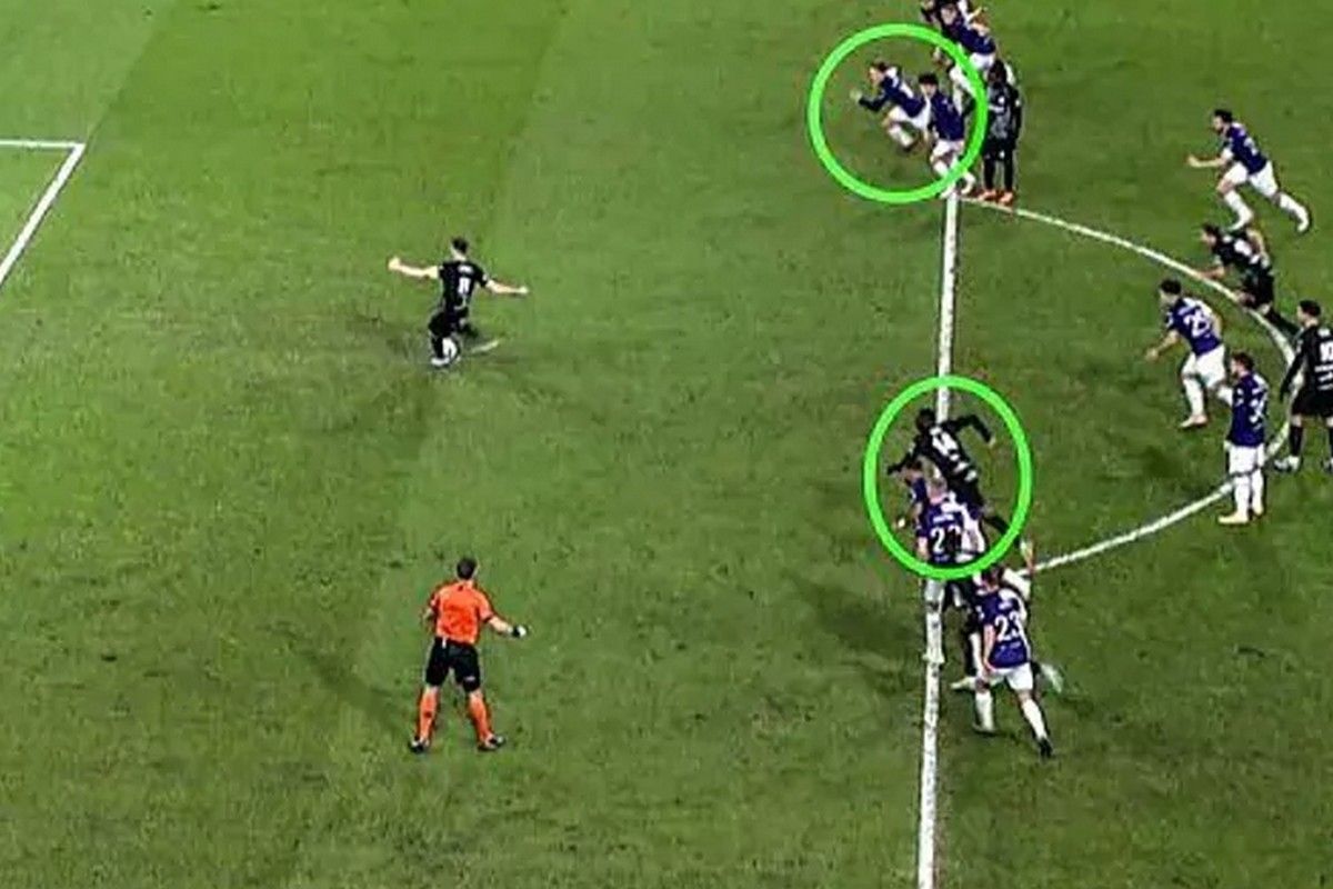 Το γκολ όμως δεν μέτρησε, με το VAR να προτρέπει τον διαιτητή να τσεκάρει τη φάση και εκείνος να την βλέπει στο μόνιτορ, για να αποφασίσει τελικά να ακυρώσει το γκολ της Γκενκ για το γεγονός πως ο σκόρερ είχε μπει στη μεγάλη περιοχή πριν εκτελέσει το πέναλτι ο συμπαίκτης του.