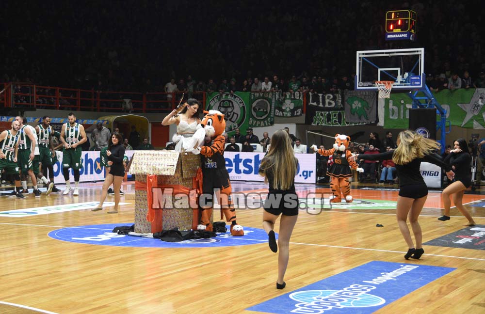Τα ονόματά τους είναι Πρόμι και Θέα και έκλεψαν την παράσταση, έχοντας μεγάλη αλληλεπίδραση τόσο με τον κόσμο όσο και με τις μαζορέτες εντός αγωνιστικού χώρου.