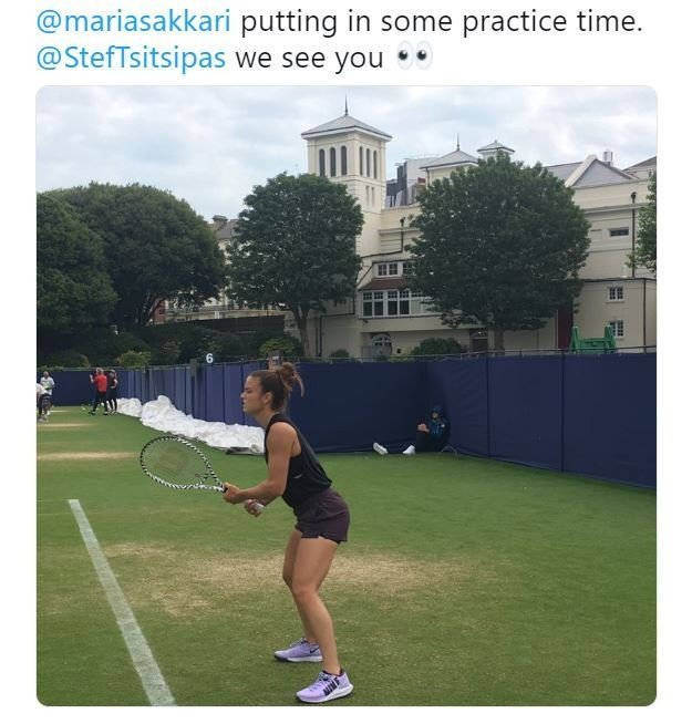 Το απόγευμα της Κυριακής (23/6) κι ενώ η Σάκκαρη έκανε προπόνηση στο Ιστμπορν ενόψει της έναρξης του Γουίμπλεντον, κάπου στο βάθος κοντά στο κορτ, σε μια φωτογραφία που αναρτήθηκε στα social media, διακρίνεται στο βάθος ένας… ψιλόλιγνος άνδρας με μαύρα γυαλιά και κουκούλα να παρακολουθεί διακριτικά τη Σάκκαρη καθισμένος σε μια γωνιά.