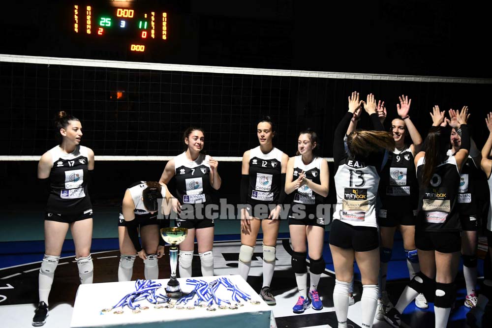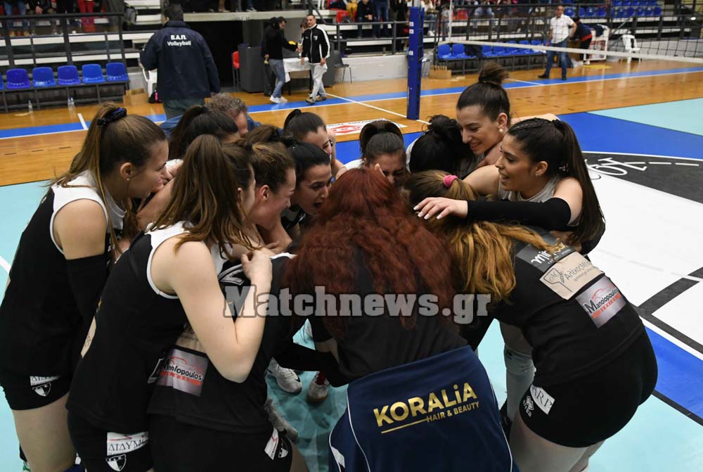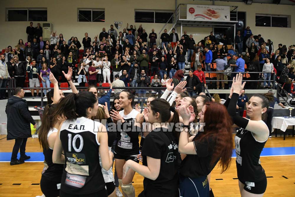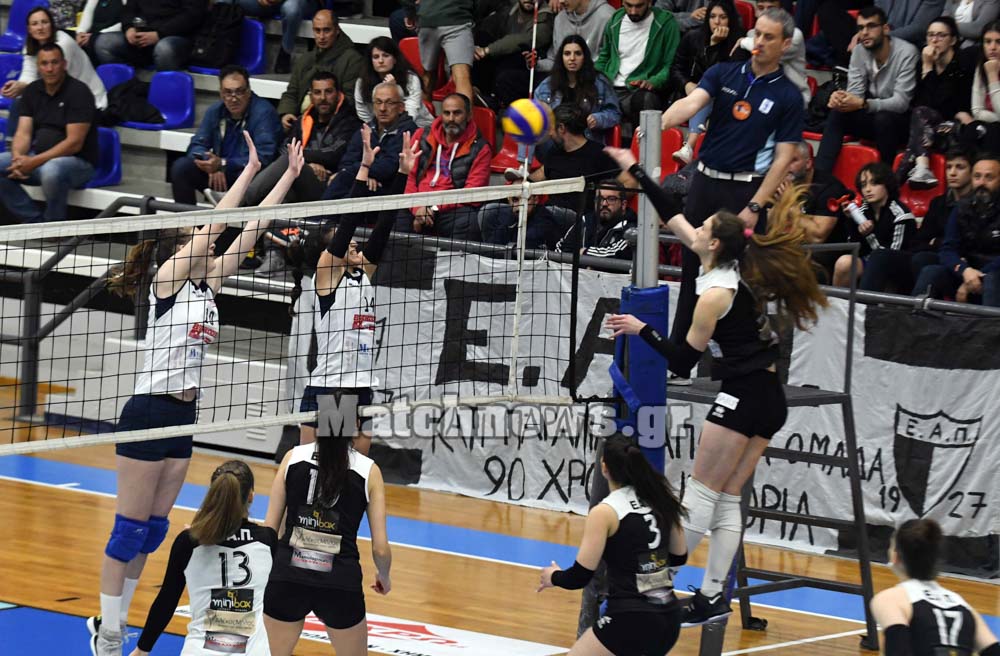 Η πέμπτη μονομαχία των δύο αντιπάλων στη σεζόν και τρίτη για τους τελικούς θύμισε τις προηγούμενες, που ήταν όλες συναρπαστικές, με την ΕΑΠ να είναι κυρίαρχη μετά το πρώτο σετ και να κατακτάει τον τίτλο.