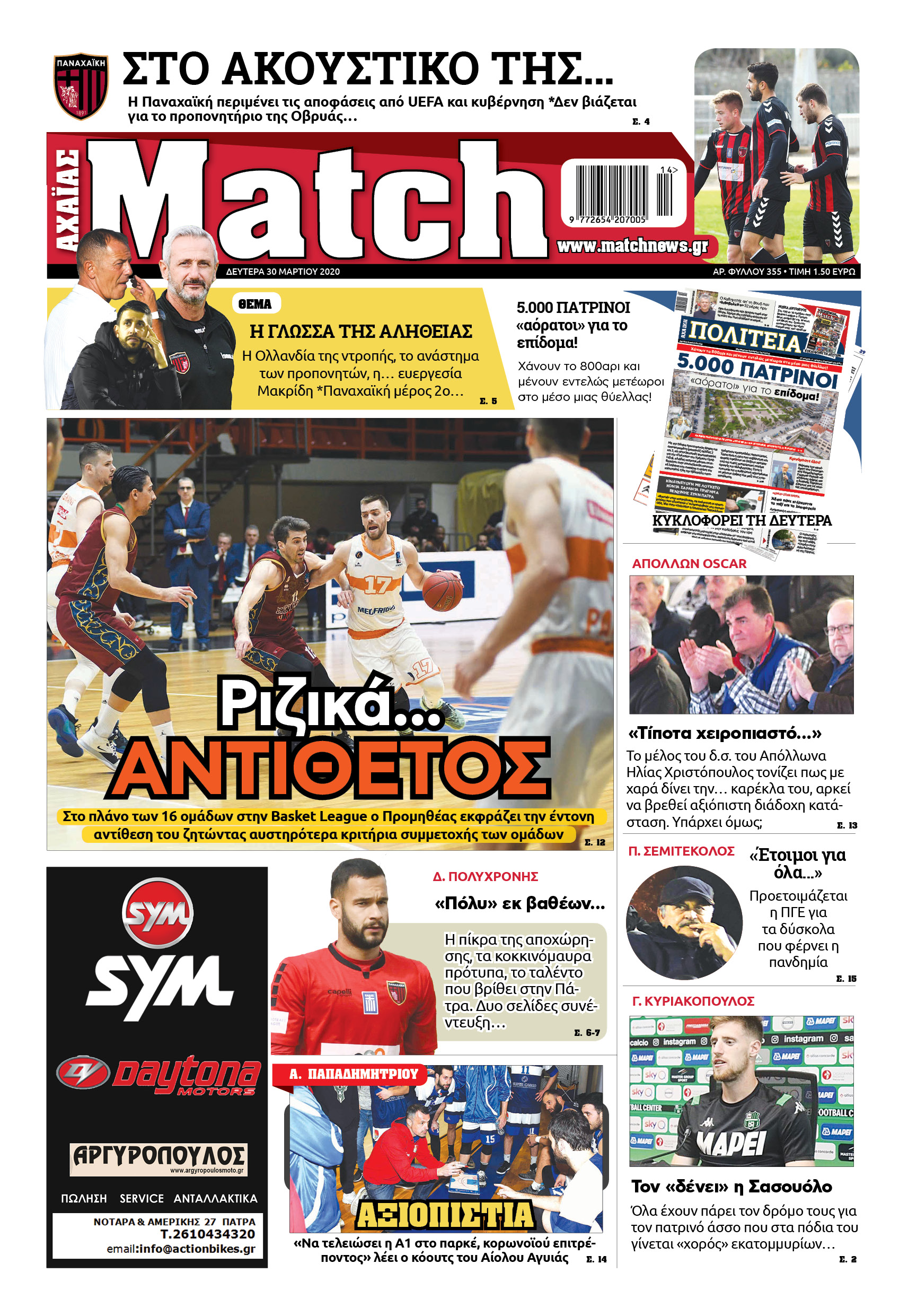 Πιστή στο ραντεβού της με την αθλητική ενημέρωση, η «Match» κυκλοφορεί και αυτή τη Δευτέρα γεμάτη πρωτογενές και αποκαλυπτικό ρεπορτάζ.