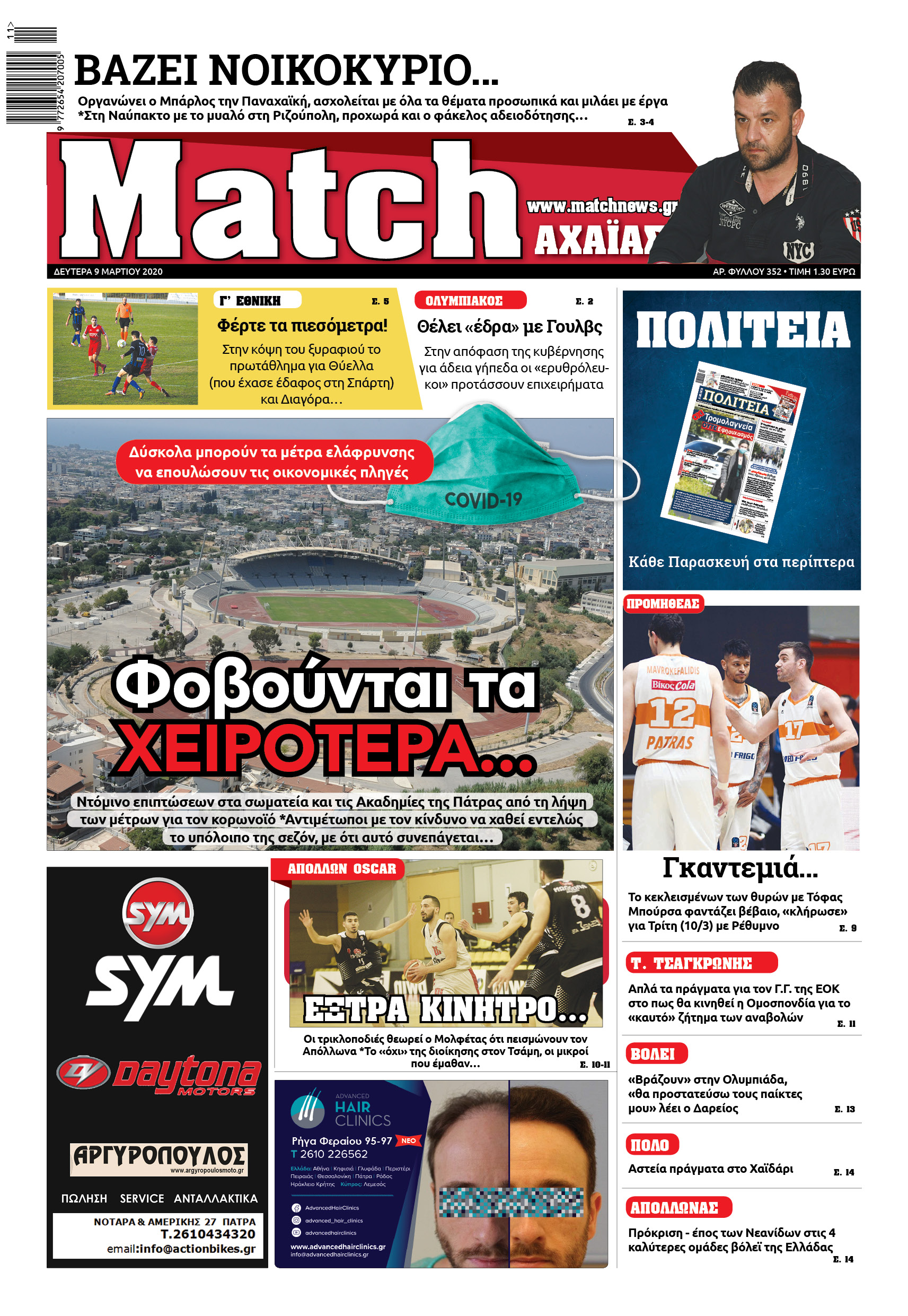 Ντόμινο επιπτώσεων στα σωματεία και τις Ακαδημίες της Πάτρας από τη λήψη των μέτρων για τον κορωνοϊό *Αντιμέτωποι με τον κίνδυνο να χαθεί εντελώς το υπόλοιπο της σεζόν, με ότι αυτό συνεπάγεται…