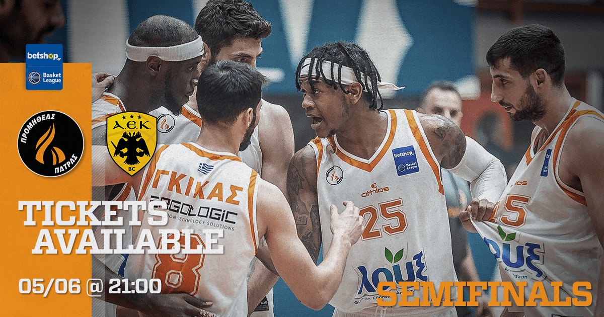 Κυκλοφόρησαν τα εισιτήρια για το 4ο παιχνίδι της Ημιτελικής σειράς των play-off της betshop.gr Basket League, που μπορεί και ν’ αποδειχθεί η τελική μάχη στην μονομαχία ΑΕΚ και Προμηθέα για μια θέση στον Τελικό του Πρωταθλήματος. Οι φίλαθλοι της Πάτρας, που έδωσαν την ώθηση και τα φτερά στον Προμηθέα στο 2ο παιχνίδι για να πετάξει προς την νίκη και την ισοφάριση, δίνουν ραντεβού για το μεγαλύτερο παιχνίδι στην Ιστορία του Προμηθέα. Ο αγώνας θα διεξαχθεί την Τετάρτη 5 Ιουνίου, στην κεντρική σάλα του «Δημ. Τόφαλος», με ώρα έναρξης τις 21:00 και οι φίλοι του μπάσκετ μπορούν να προμηθεύονται τα εισιτήρια της αναμέτρησης ηλεκτρονικά μέσω της Viva ή καθημερινά 10:00-18:00 από τα γραφεία στα γήπεδα του Προμηθέα στον Καστελλόκαμπο και 10:00-14:00 από τα γραφεία της ΚΑΕ στο κέντρο (Κανακάρη 136, 5ος όροφος, τηλ: 2610 275820).