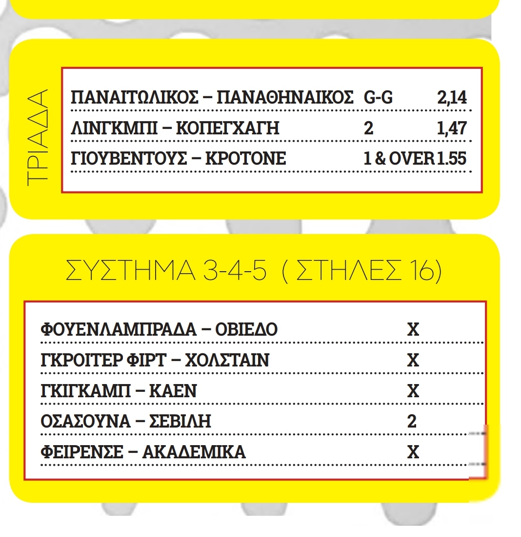 Και θα κλείσουμε την τριάδα από το Καμπιονάτο και την Γιουβέντους που υποδέχεται στο Τορίνο την Κροτόνε, σε μια αναμέτρηση που περιμένουμε την ομάδα του Πίρλο να ξεσπάσει -προερχόμενη από την ήττα της με 2-1 κόντρα στην Πόρτο για το Champions League- κερδίζοντας εύκολα και με πολλά γκολ.