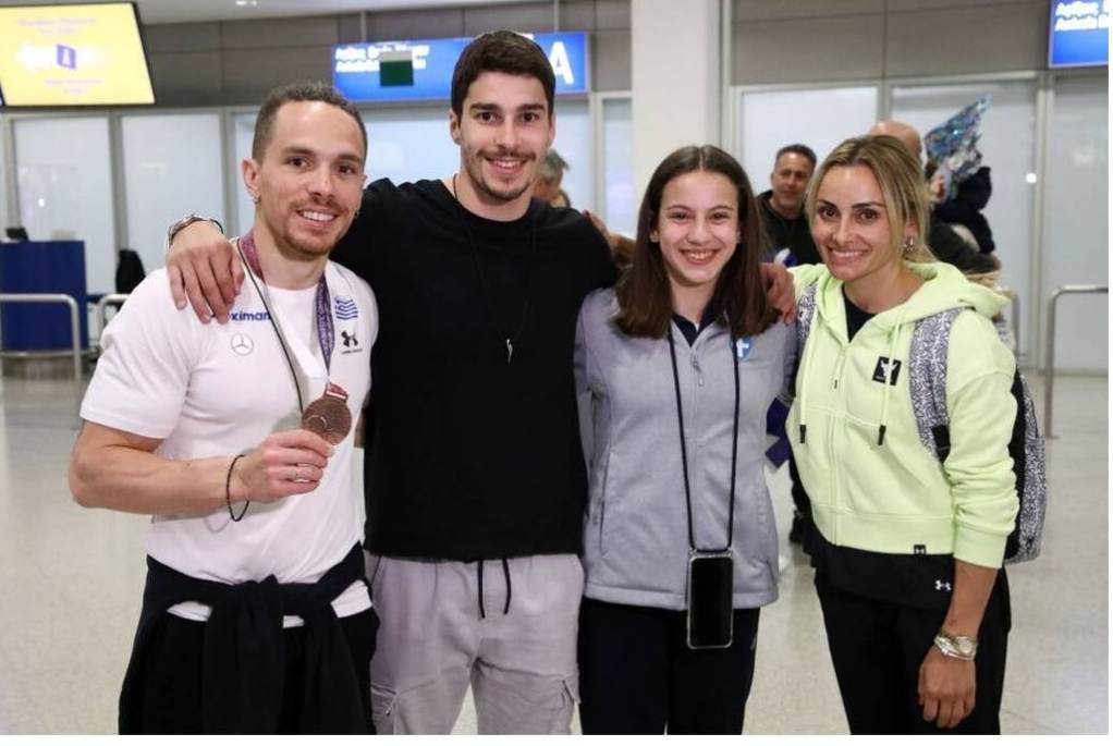 Επίσης θερμή υποδοχή επιφύλαξε αντιπροσωπεία από την Πάτρα, στο αεροδρόμιο (φωτό κάτω) στην διεθνή αθλήτρια, με τον προπονητή της Ηλία Τσοπάνογλου, τη χορογράφο Μάρι Παπαδοπούλου, τους γονείς με τη γιαγιά της, εκπροσώπους του Άτλαντα Πατρών, καθώς και συναθλήτριές της.