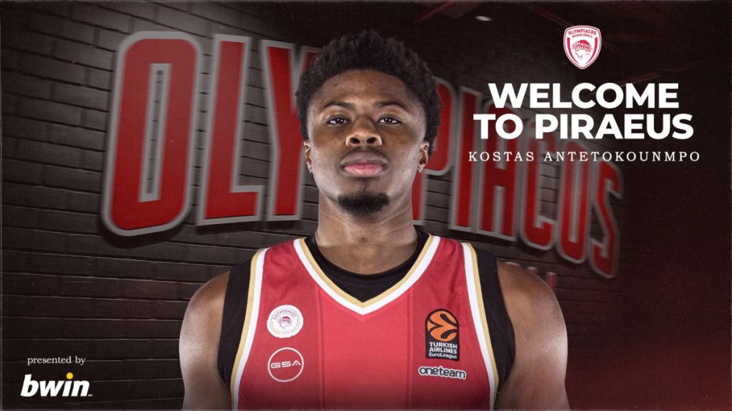 «Η ΚΑΕ Ολυμπιακός ανακοινώνει την απόκτηση του Κώστα Αντετοκούνμπο. Ο Έλληνας σέντερ υπέγραψε με την ομάδα μας συμβόλαιο διετούς διάρκειας».