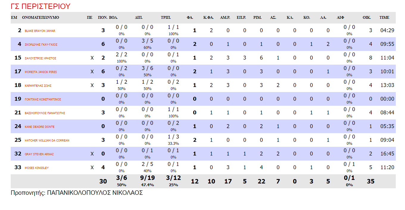 Στον αγώνα με το Μαρούσι είχε και πάλι ανάλογο χρόνο (14:44), με 7 πόντους (2/4 τρίποντα, 1/1 βολή). Ο ίδιος, και στην καθημερινή προπόνηση, βγάζει τον καλύτερο εαυτό του, κάτι που αρέσει στον Λιμνιάτη.