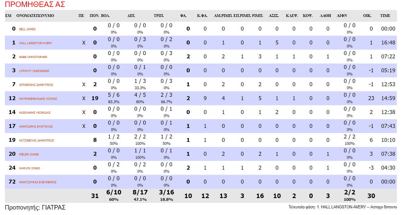 Τη δική του, επίσης αξιόλογη, παρουσία είχε από το ελληνικό στοιχείο ο Σωτήρης Σταυρακόπουλος, παίκτης που ο τεχνικός του Προμηθέαγνωρίζει πολύ καλά από την περσινή τους συνεργασία στο Περιστέρι, τον πιστεύει και γι’ αυτό τον πήρε μαζί του στην Πάτρα.