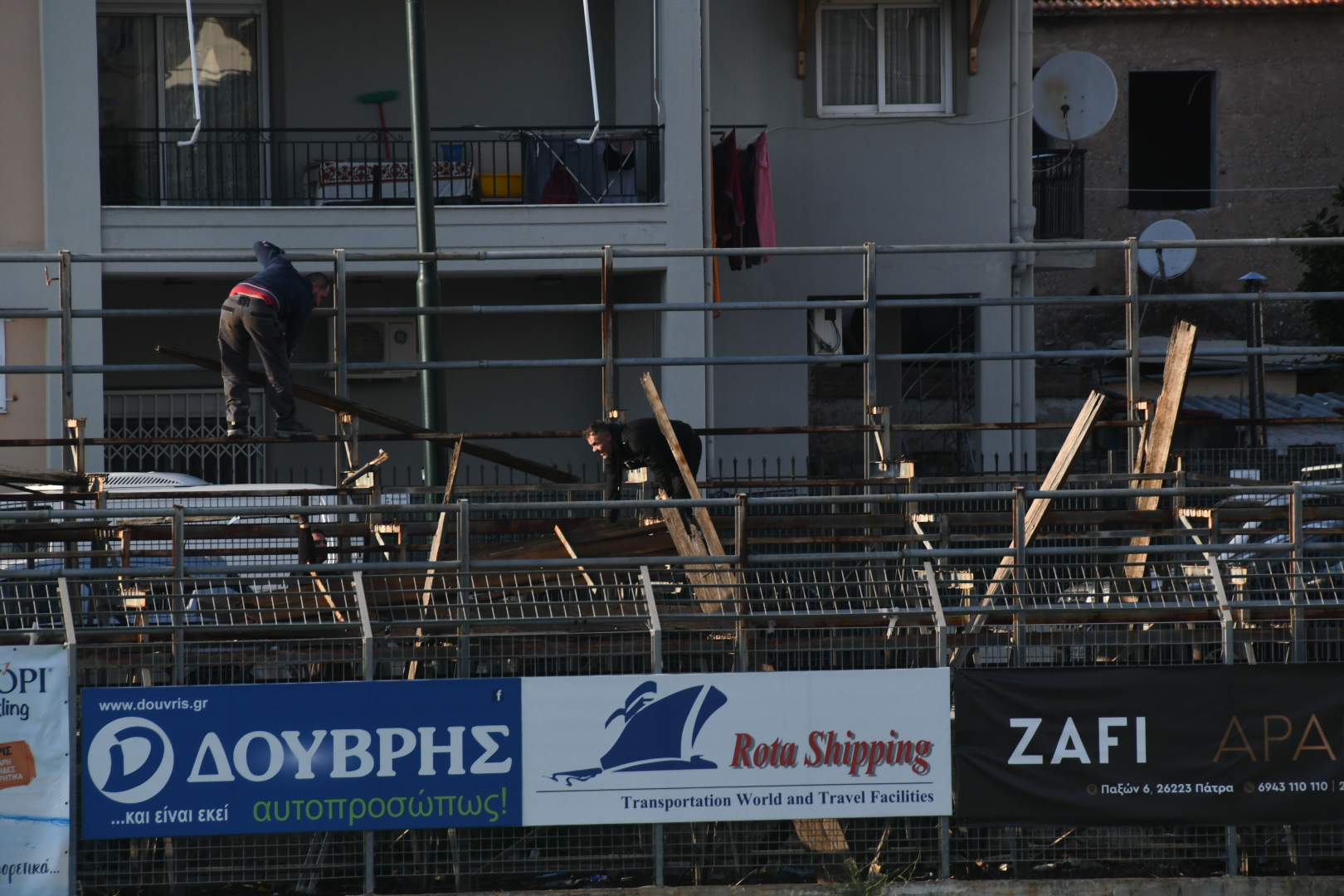 Όπως φαίνεται και στη φωτογραφία η κερκίδα όπου ο κόσμος δεν μπορεί να καθίσει για λόγους ασφαλείας, καθαρίστηκε και πετάχτηκαν σαπισμένα ξύλα και πολλά αντικείμενα, τα οποία μεγάλωναν τον κίνδυνο ατυχήματος.