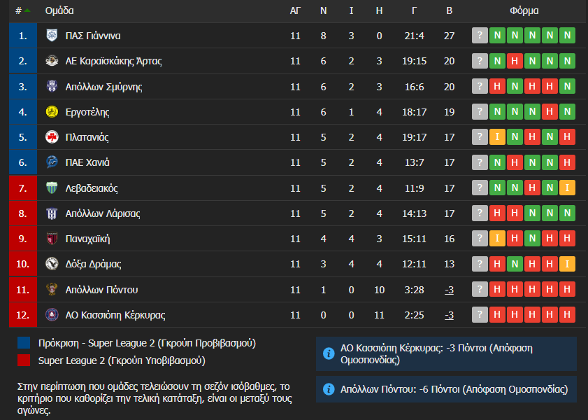 Ολοκληρώθηκε και τυπικά η 11η αγωνιστική της Superleague 2, που σήμανε και τέλος του α’ γύρου του πρωταθλήματος.