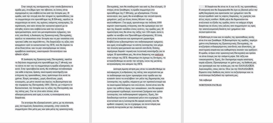 Αναλυτικά η ανακοίνωση της Παναχαϊκής Γυμναστικής Ένωσης: