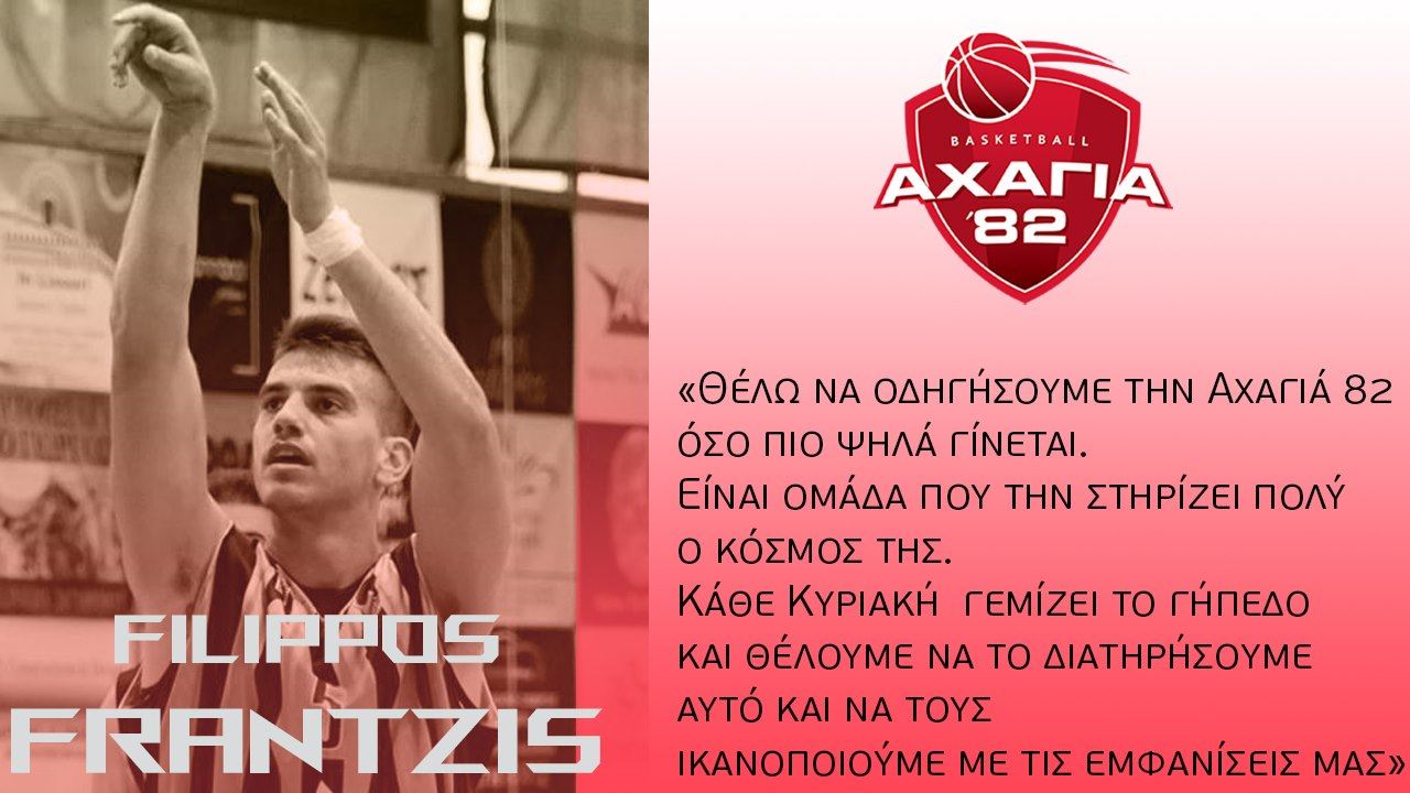“Ο ΑΟ Αχαγιά 82 ανακοινώνει την απόκτηση του Φίλιππου Φραντζή, ο οποίος θα αγωνίζεται στην ομάδα μας τη νέα σεζόν. Ο 25χρονος small forward είναι γεννημένος το 1994, έχει ύψος 2,01 και αγωνίζεται στην θέση “3”.