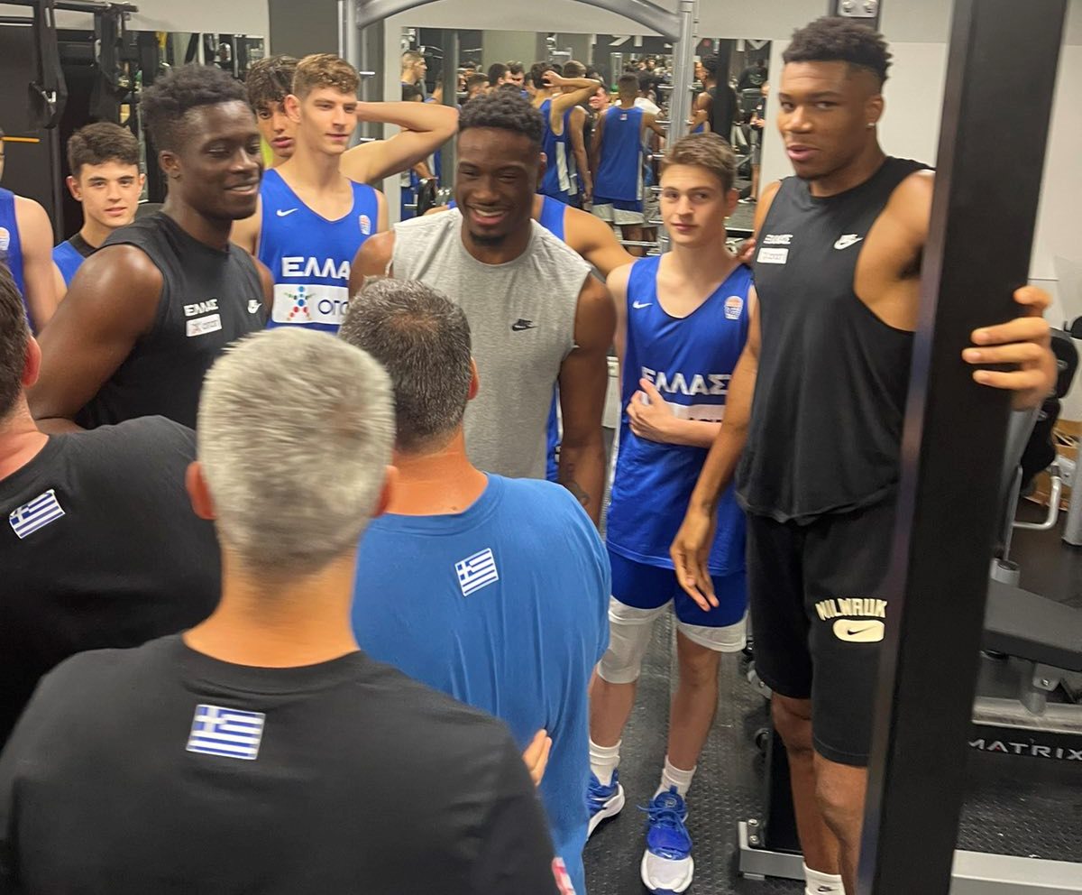 Κοντά στο χώρο που έκαναν προπόνηση γυμναζόταν ο Γιάννης Αντετοκούνμπο, παρέα με τα αδέρφια του, Θανάση και Άλεξ. Οι πιτσιρικάδες δεν έχασαν την ευκαιρία να πλησιάσουν τον σούπερ σταρ των Μπακς και να ζητήσουν να φωτογραφηθούν.