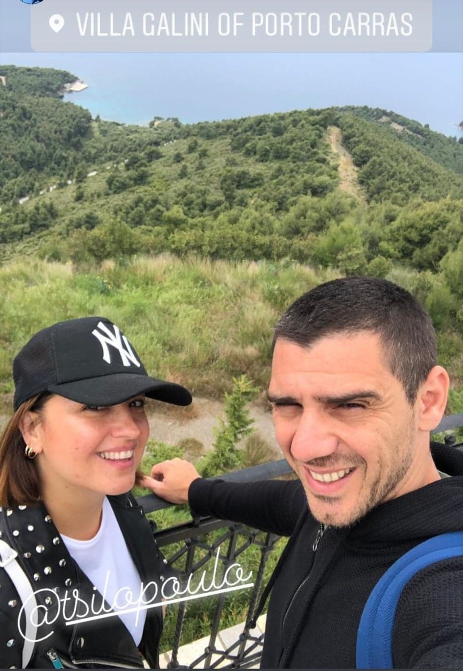 Στην παρέα των διεθνών ήταν και ο Κώστας Κατσουράνης, με τη σύζυγό του, Έφη να αποθανατίζει τις στιγμές τους στο ειδυλλιακό μέρος.