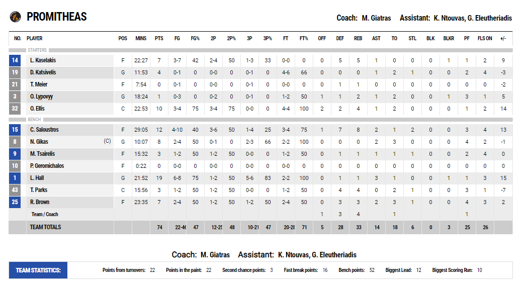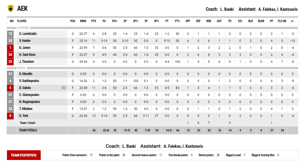 Η ΑΕΚ είχε σε εξαιρετική ημέρα τους Σαντ Ρος και Χάντερ που σκόραραν ακατάπαυστα, ενώ σε αντίθεση με τον Προμηθέα απέφευγε τα αβίαστα λάθη και έπαιρνε όσα περισσότερα επιθετικά ριμπάουντ μπορούσε.