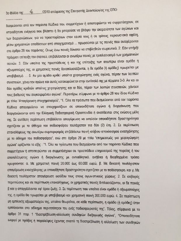 Οι σελίδες της απόφασης του υποβιβασμού ΟΦΗ και Αιγινιακού