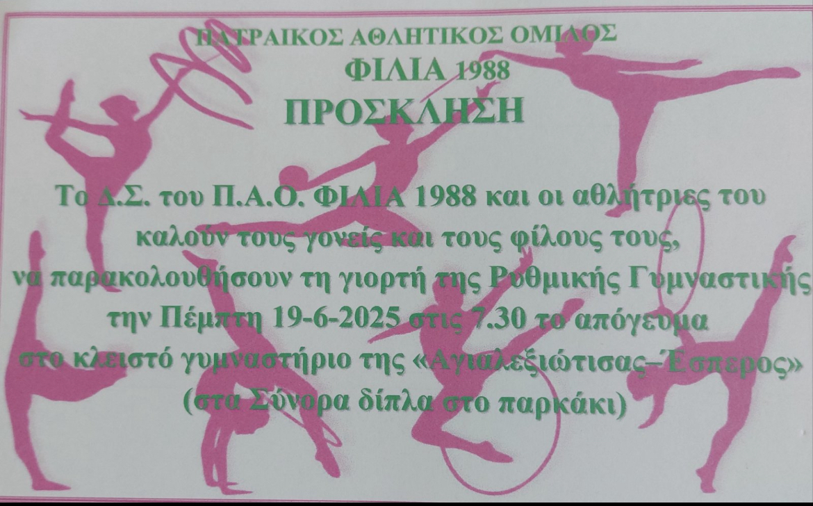 Π.Α.Ο. ΦΙΛΙΑ 1988: Προσκαλεί γονείς και φίλους των αθλητριών την Πέμπτη (19/6) στο κλειστό της «Αλεξιώτισσας – Έσπερος»