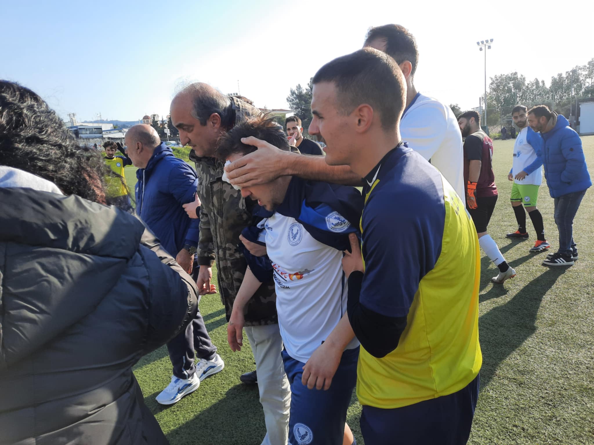 Ο Θανάσης Καλτσάς των φιλοξενούμενων δέχθηκε χτύπημα στο κεφάλι από αντίπαλο (όχι εσκεμμένα) και το ματς διακόπηκε. Συμπαίκτες και αντίπαλοι τον βοήθησαν να αποχωρήσει από το γήπεδο και μεταφέρθηκε στο νοσοκομείο, όπου τοποθετήθηκαν ράμματα.