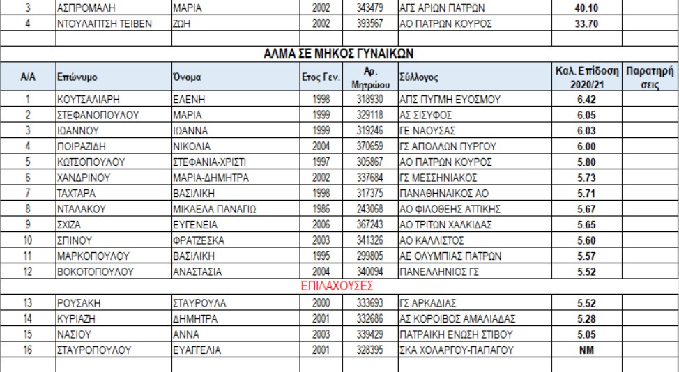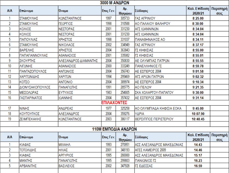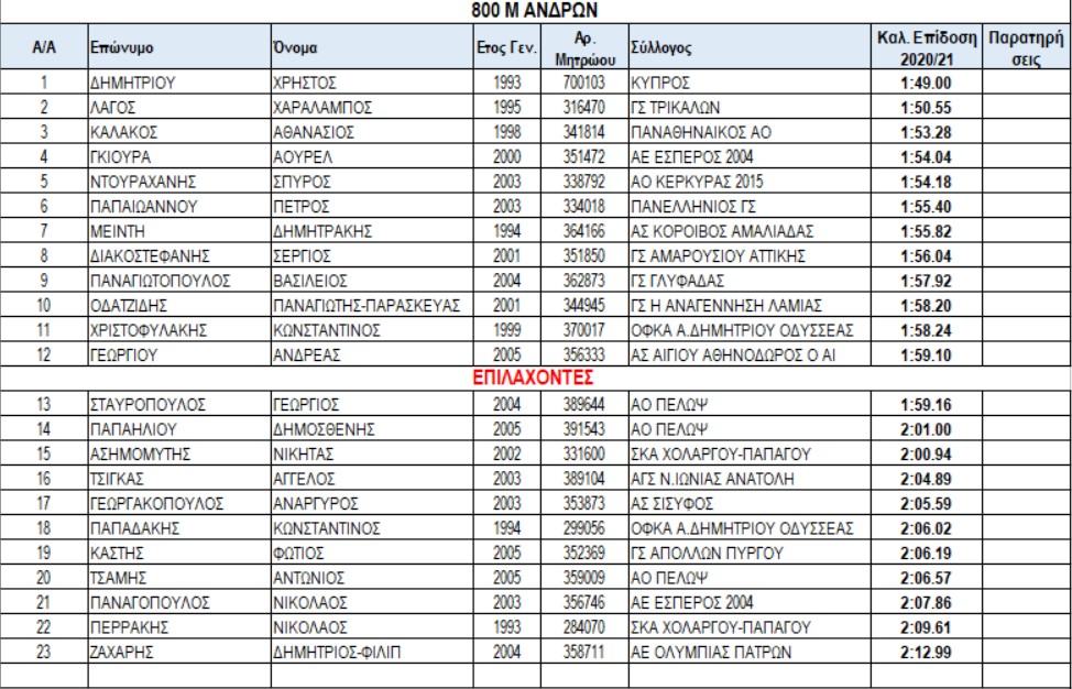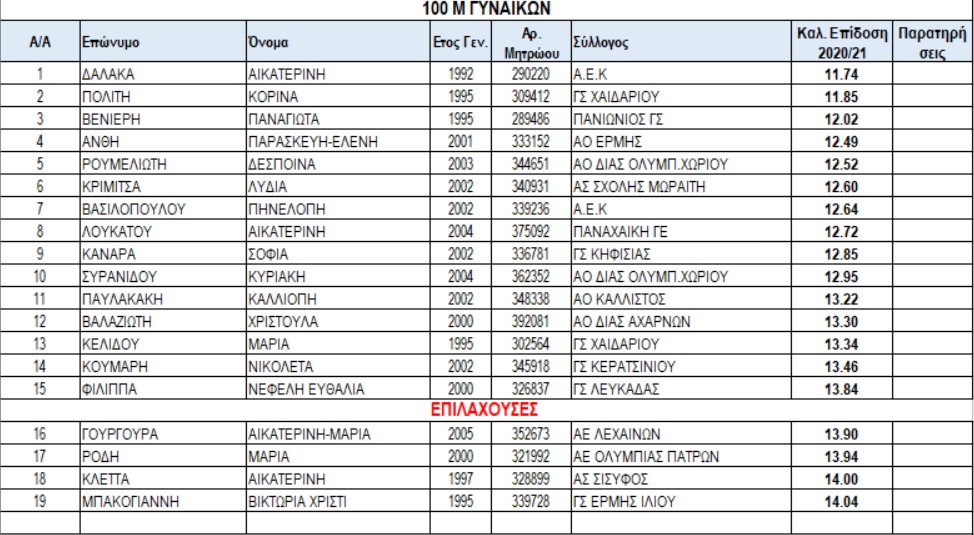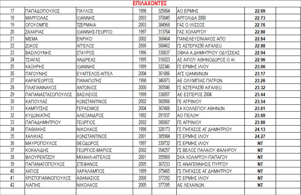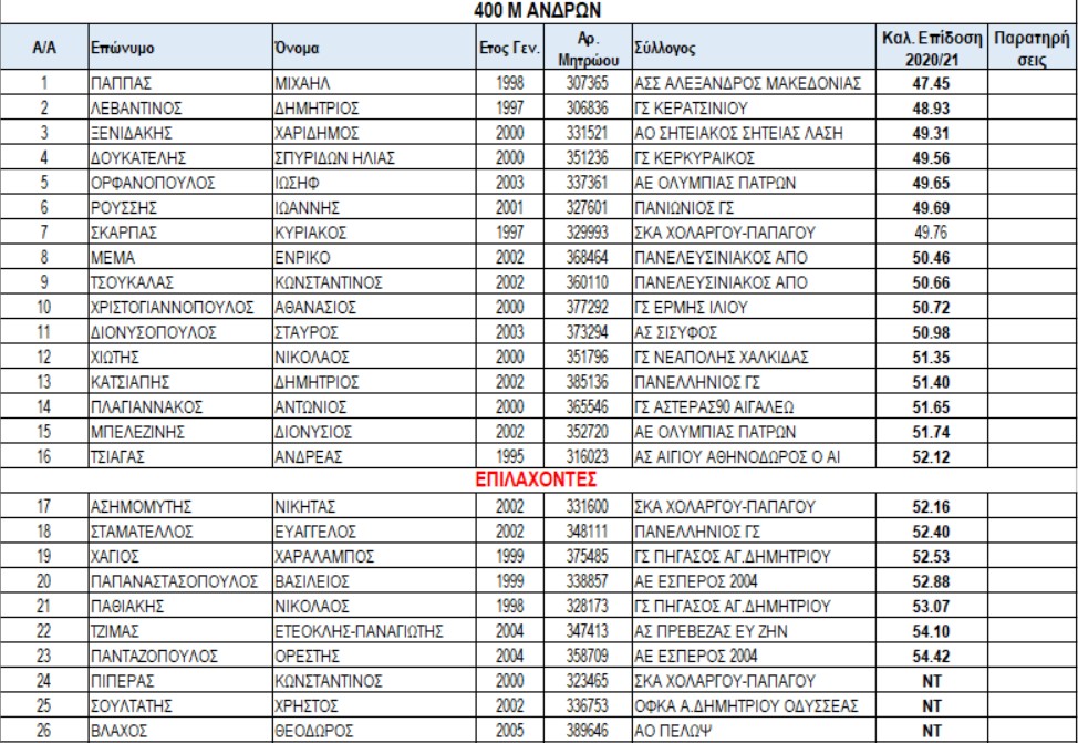 Οι οργανωτές έκαναν γνωστό πως σε περίπτωση που υπάρχουν ακυρώσεις, οι τελικές συμμετοχές θα συμπληρωθούν από τους επιλαχόντες. Επικοινωνία με την ΕΑΣ στα τηλέφωνα 2610 313138 & 2610 320203 από 10.00 έως 14.00.