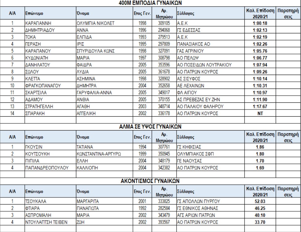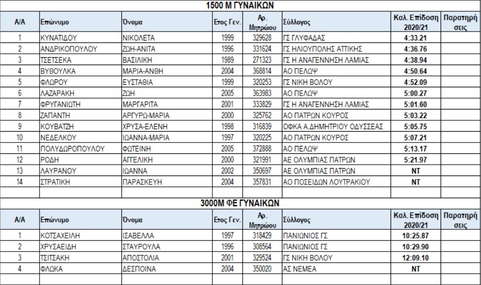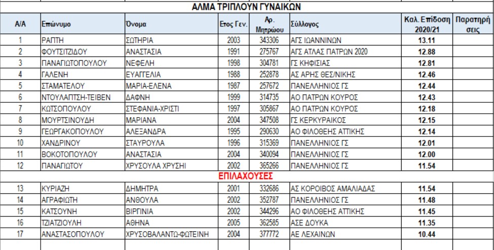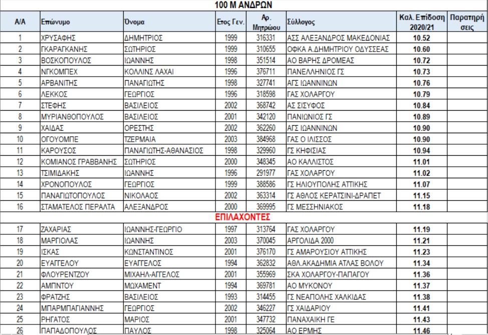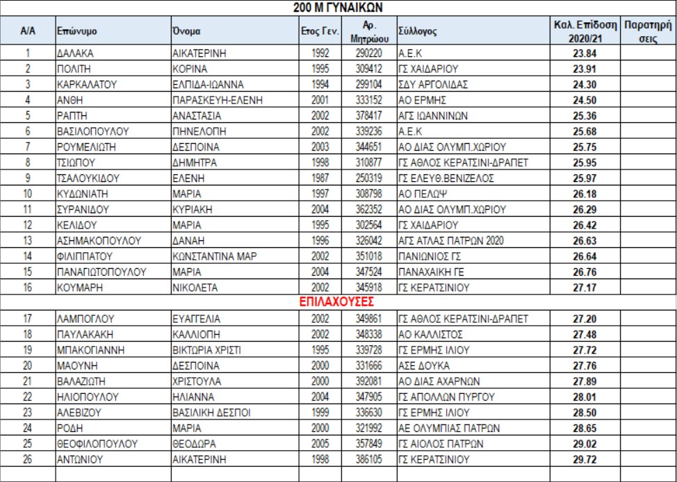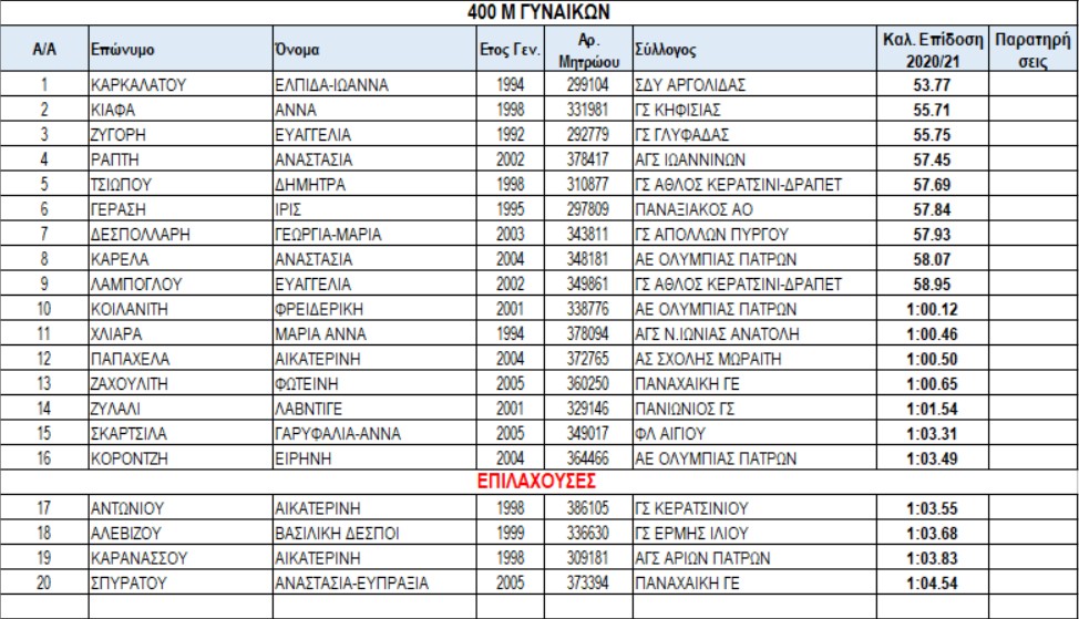 Οι οργανωτές έκαναν γνωστό πως σε περίπτωση που υπάρχουν ακυρώσεις, οι τελικές συμμετοχές θα συμπληρωθούν από τους επιλαχόντες. Επικοινωνία με την ΕΑΣ στα τηλέφωνα 2610 313138 & 2610 320203 από 10.00 έως 14.00.