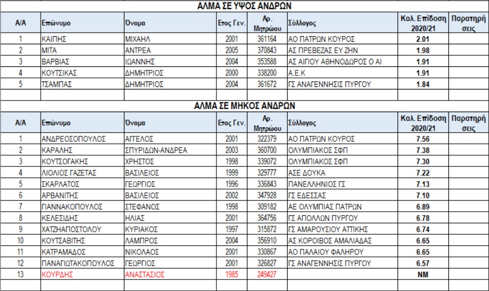 Η ΕΑΣ ΣΕΓΑΣ Β. Πελοποννήσου ανακοίνωσε τα ονόματα αθλητών και αθλητριών, που θα συμμετάσχουν στα φετινά Τοφάλεια, τα οποία θα γίνουν την Τετάρτη (19/5) στο Παμπελοποννησιακό στάδιο.