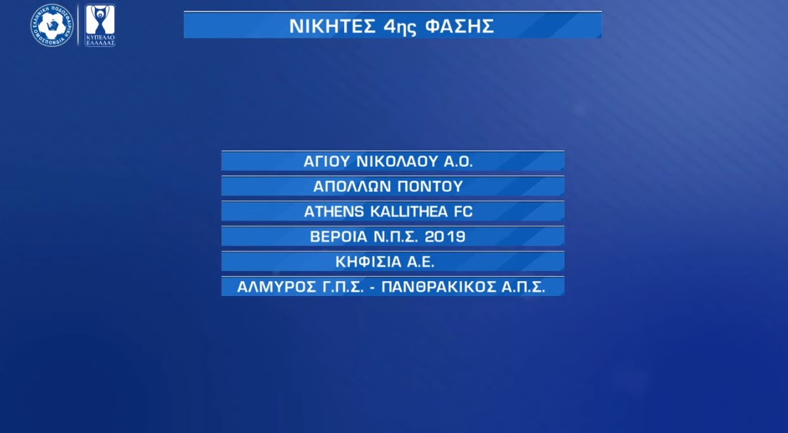 *Η κλήρωση της 5ης Φάσης πραγματοποιήθηκε στις 11:00 από τα γραφεία της Ε.Π.Ο. στο Πάρκο Γουδή και την παρουσίασε η Ζέτα Θεοδωρακοπούλου με καλεσμένο τον Σάκη Τσιώλη.