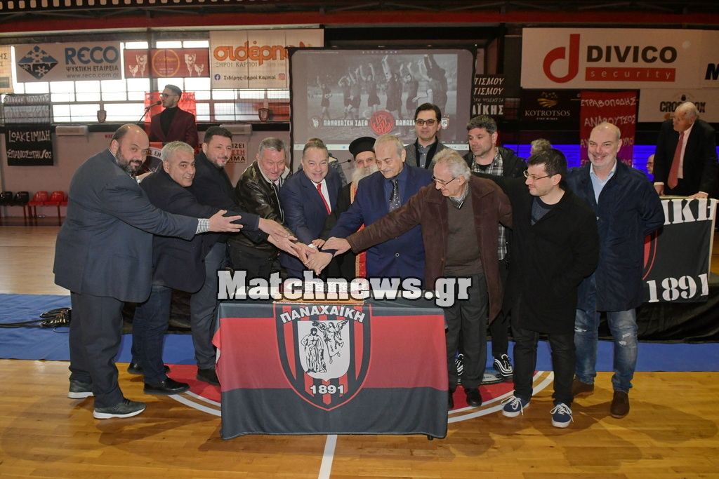 Στο κατάμεστο κλειστό της Παναχαϊκής στην Αγυιά, παραβρέθηκαν όλοι η εν ζωή παλαίμαχοι εκείνης της ομάδας, όπως και συγγενείς και φίλοι των περισσότερων από αυτούς που έχουν φύγει από τη ζωή και έγραψαν με χρυσά γράμματα την ιστορία των «κοκκινόμαυρων».