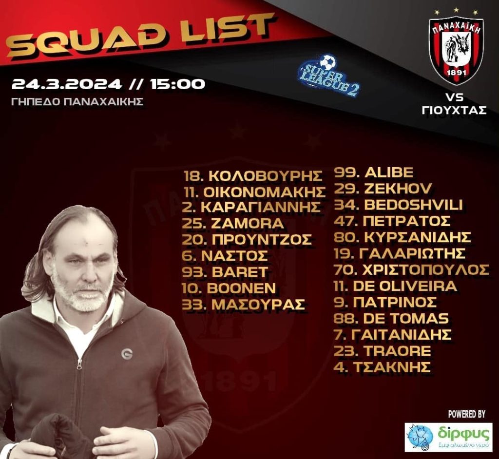 Με 22 παίκτες θα πάει η Παναχαϊκή στον πρώτο «τελικό» για τα πλέι άουτ του Νότιου Ομίλου της Super League 2, με τον Γιούχτα την Κυριακή (24/03, 15:00) στην Αγυιά.