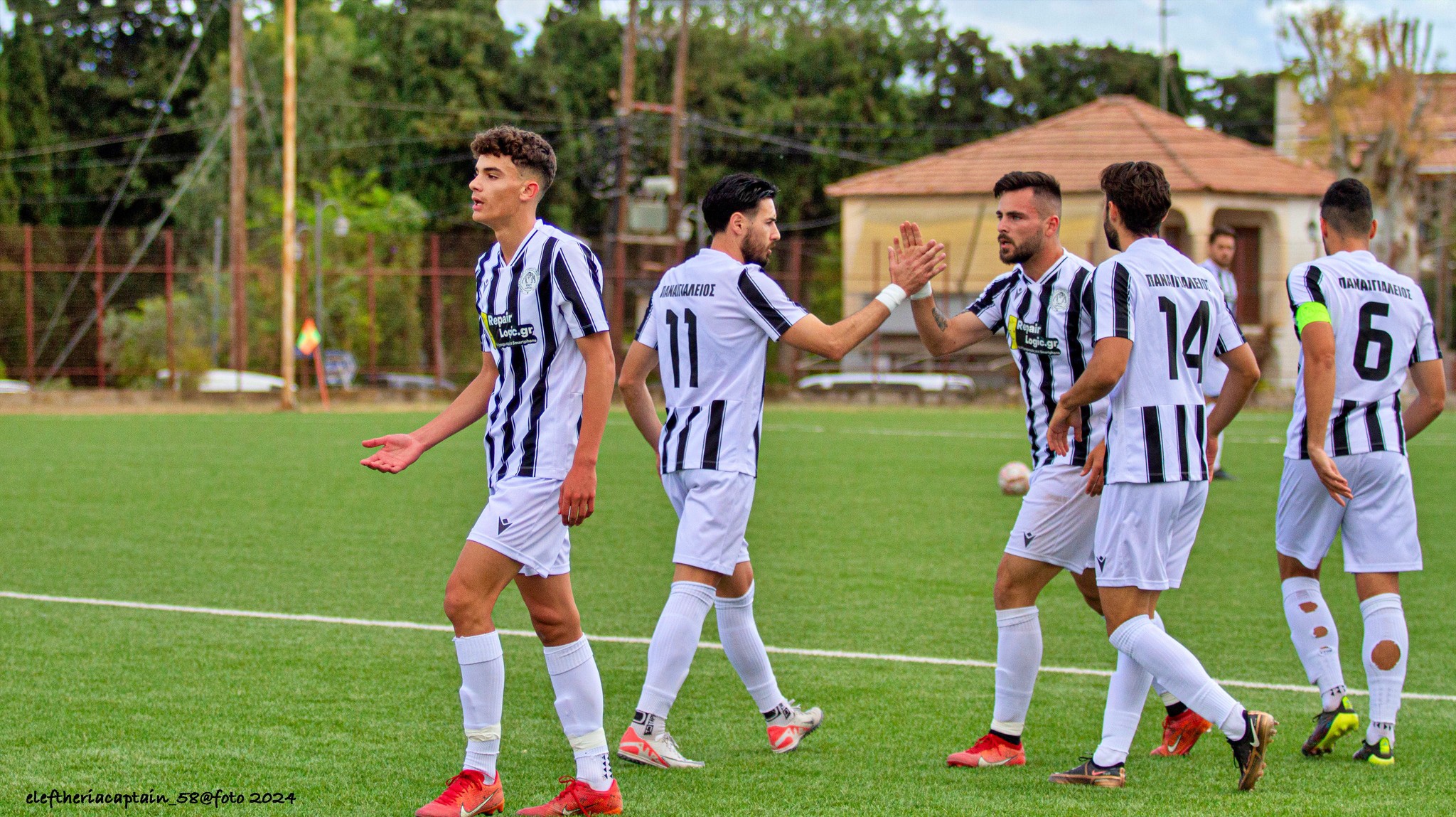 Στο πρώτο ημίχρονο το σκορ άνοιξε στο 7’ ο Σταυρόπουλος μετά από πάσα του Τσεκούρα, στο 14’ ο νεαρός Αναστασόπουλος έκανε το 2-0 και στο 16’ ο Ανδρέας Καλόφωνος διαμόρφωσε το 3-0 με ασίστ του Καρναβά.