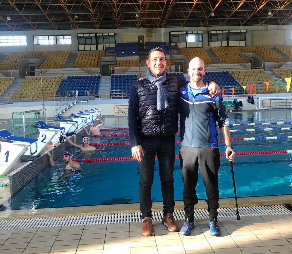 *Στη φωτογραφία που επισυνάπτεται, ο αντιπρόεδρος του ΠΕΑΚ Πάτρας Μιχάλης Κουρέτας με τον εθνικό προπονητή open water του Ισραήλ Amir Karfa