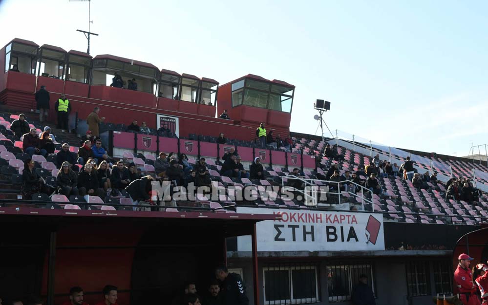 Αυτό ήταν το σκηνικό στο ματς της Παναχαϊκής με την Κέρκυρα στο πλαίσιο της 13ης αγωνιστικής της SuperLeague 2 που βρήκε εύκολα νικητές του Αχαιούς με 4-0. Τα γκολ πέτυχαν οι Σιατραβάνης (42’, 63’),