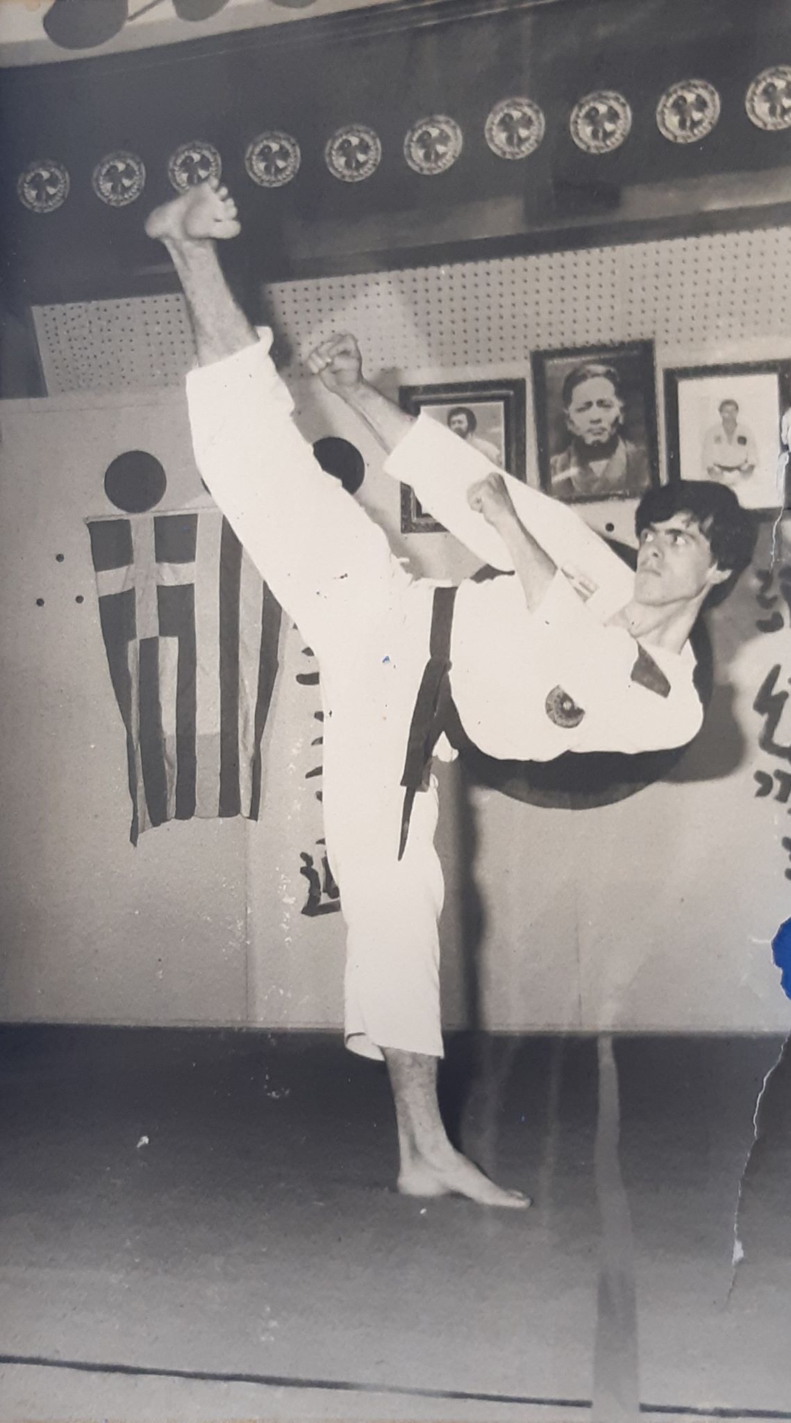 Απ. Η αρχή έγινε το 1975. Ένα απόγευμα. Παιδάκι όντας. Πήγα στη σχολή του μετέπειτα δασκάλου μου και δειλά δειλά κατέβηκα τα σκαλιά ενός υπόγειου χώρου στην οδό Κοδράτου 6-8 στην Αθήνα. Γιατί, βλέπετε, τότε, οι Σχολές Καράτε δεν είχαν τον σεβασμό και την αναγνώριση που έχουν από τον κόσμο σήμερα