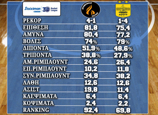Προμηθέας-Άρης: Οι αριθμοί και το μικρό προβάδισμα των φιλοξενούμενων