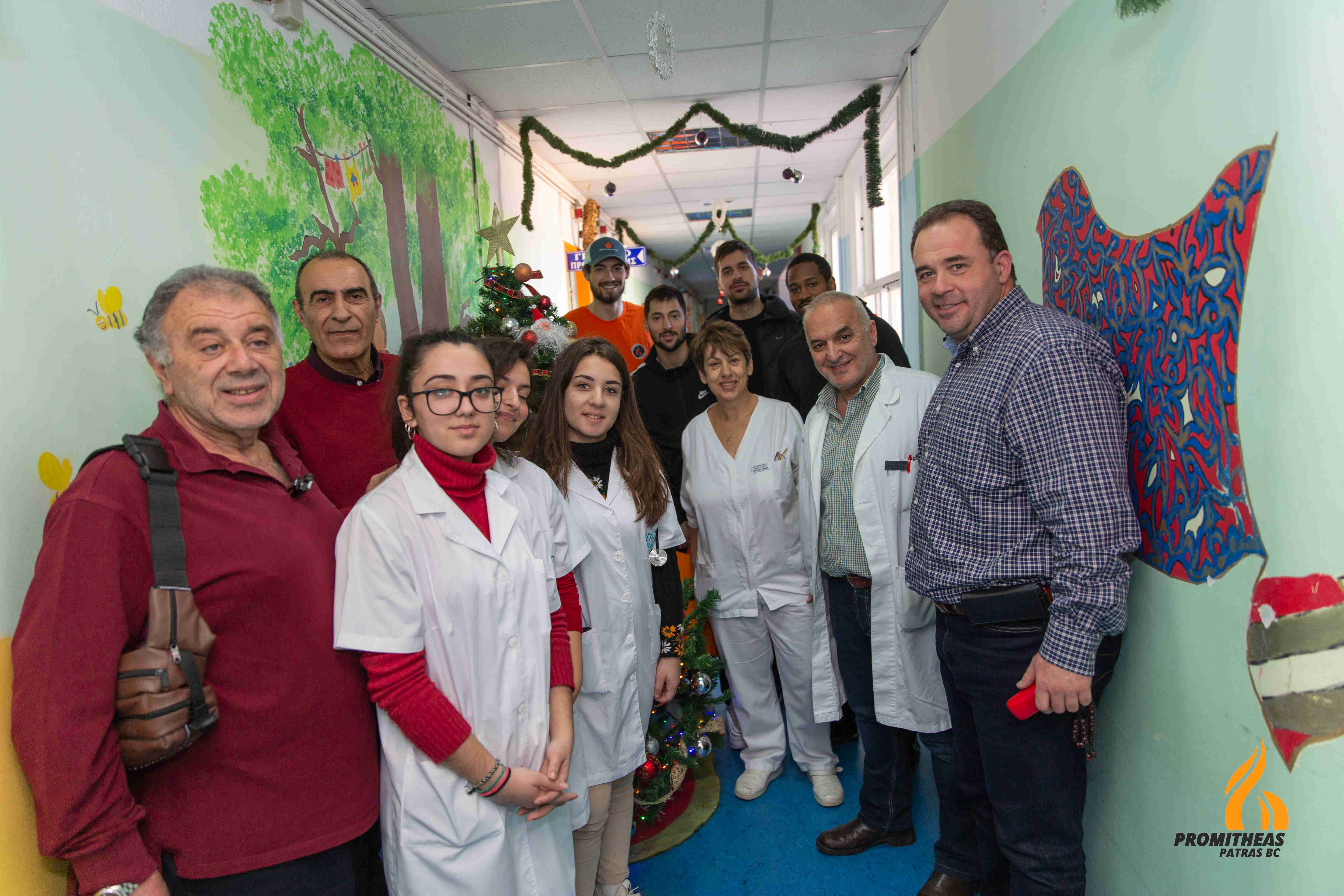 Η αντιπροσωπεία του Προμηθέα, αποτελούμενη από τους αθλητές Νίκο Γκίκα, Πέτρο Γερομιχαλό, Λάνγκστον Χόλ , Τόνυ Μέιερ και τον εκπρόσωπο της διοίκησης κύριο Παντελή Αθανασίου, επισκέφτηκαν το Νοσοκομείο και είχαν την ευκαιρία να ανταλλάξουν ευχές, ενώ παράλληλα, μοίρασαν δώρα στα παιδιά και τους ευχήθηκαν ταχεία ανάρρωση.