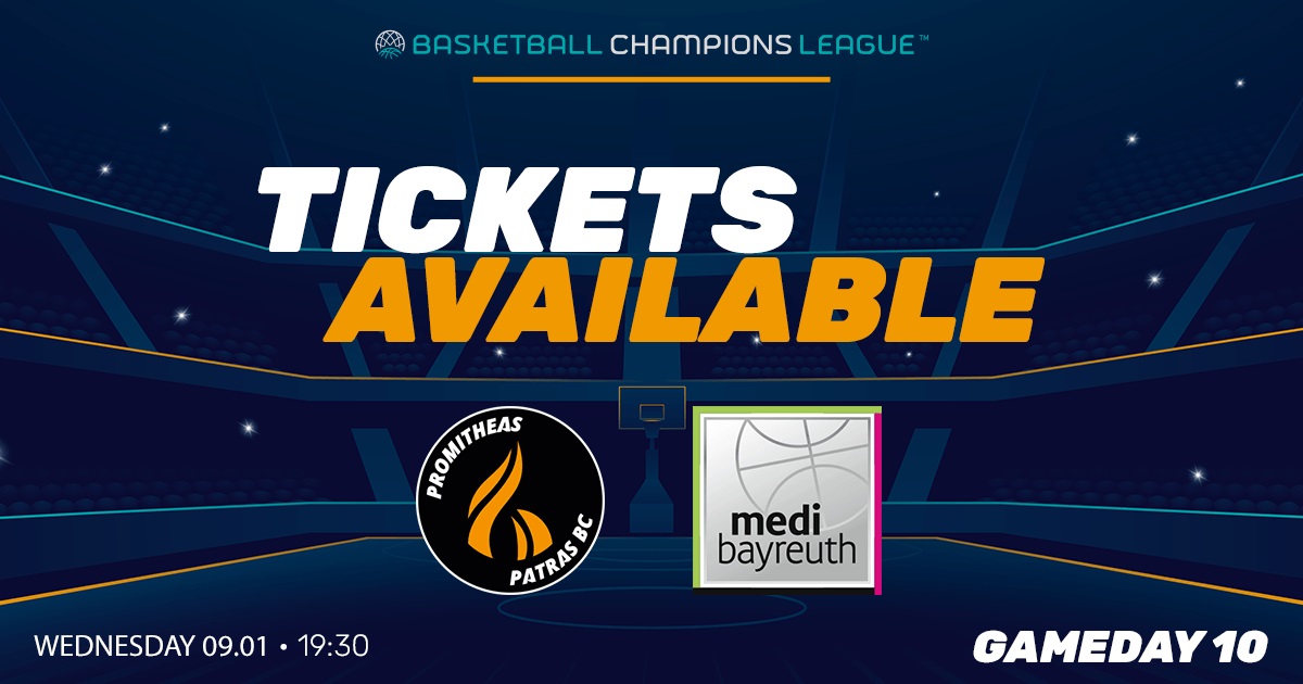 O ευρωπαίος Προμηθέας επιστρέφει στην δράση για την καθοριστική μάχη της 10ης αγωνιστικής του Basketball Champions League κόντρα στην medi Bayreuth, σ’ ένα παιχνίδι που η νίκη απέναντι στη γερμανική ομάδα ισοδυναμεί με αποφασιστικό βήμα για την πρόκριση στην επόμενη φάση του BCL. Ο αγώνας θα διεξαχθεί την Τετάρτη 9 Ιανουαρίου, στην κεντρική σάλα του «Δημ. Τόφαλος», με ώρα έναρξης τις 19:30 και οι φίλοι του Προμηθέα μπορούν να προμηθεύονται τα εισιτήρια της αναμέτρησης ηλεκτρονικά μέσω της Viva ή καθημερινά 09:00-18:00 από τα γραφεία της ΚΑΕ (Κανακάρη 136, 5ος όροφος, τηλ: 2610 275820).