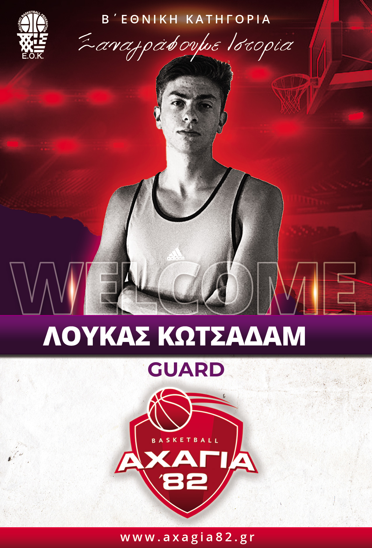 Η διοίκηση του Α.Ο. Αχαγιά ’82 συνεχίζοντας το χτίσιμο της ομάδας για τη νέα σεζόν, με χαρά ανακοινώνει την έναρξη της συνεργασίας με τον Guard Λουκά Κωτσαδάμ.