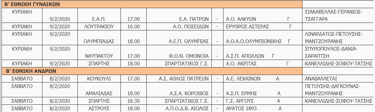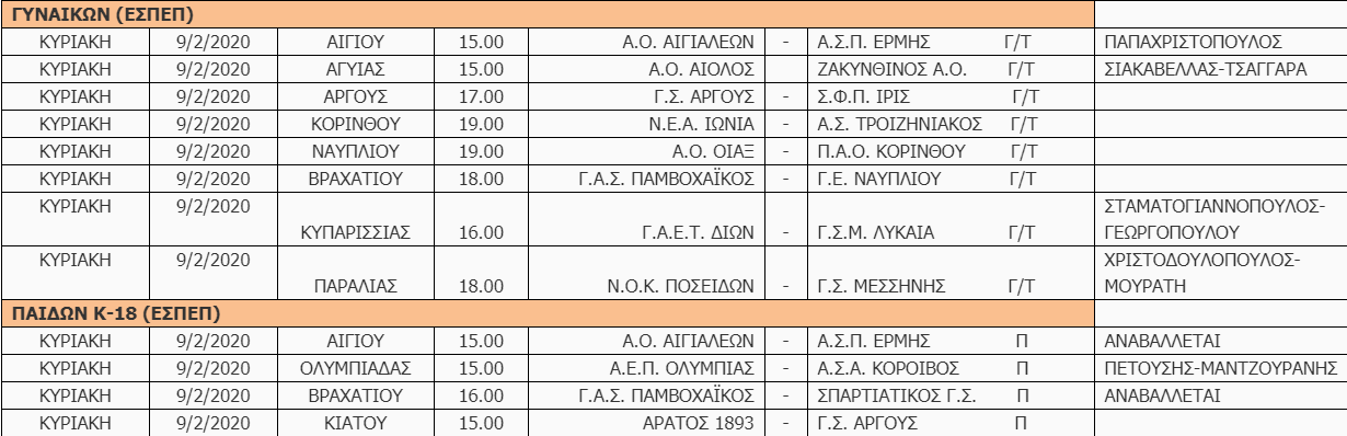 Παναχαϊκή-Σπαρτιατικός, ΕΑΠ-Αίολος Αγυιάς, Παμβοχαϊκός-Στρατηλάτης, Αστέρια Αχαΐας-Απόλλων, Περσέας-Ολυμπιάδα και ΓΑΕΤ Δίων-Ερυθρός Αστέρας.