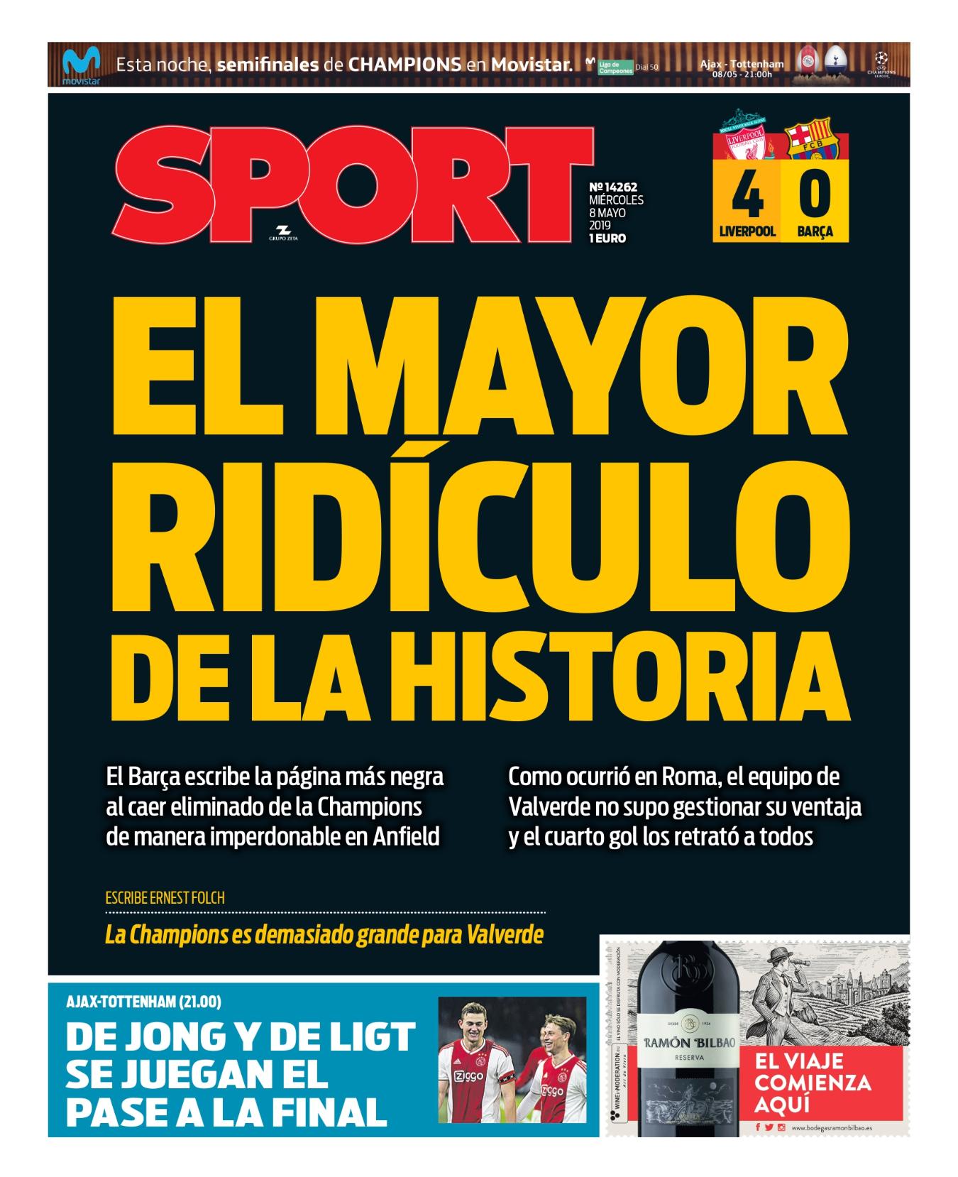 Ξέσπασε η καταλανική εφημερίδα Sport για τον αποκλεισμό της Μπαρτσελόνα από την Λίβερπουλ.