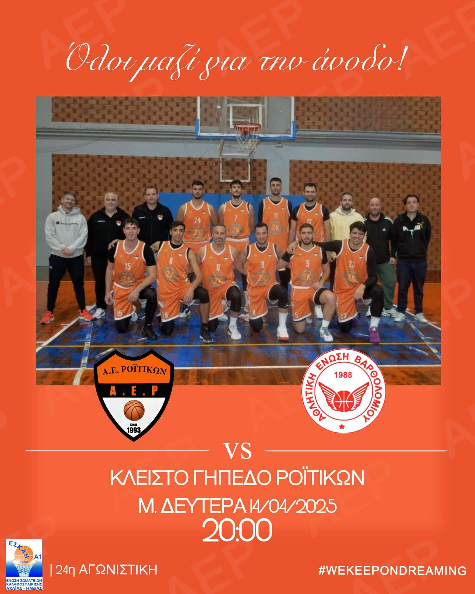 Σύσσωμη η ποδοσφαιρική Α.Ε. Ροϊτίκων θα δώσει απόψε το παρόν στις κερκίδες του κλειστού μπάσκετ της περιοχής, αφού η μπασκετική Α.Ε.Ρ. δίνει ντέρμπι τίτλου.