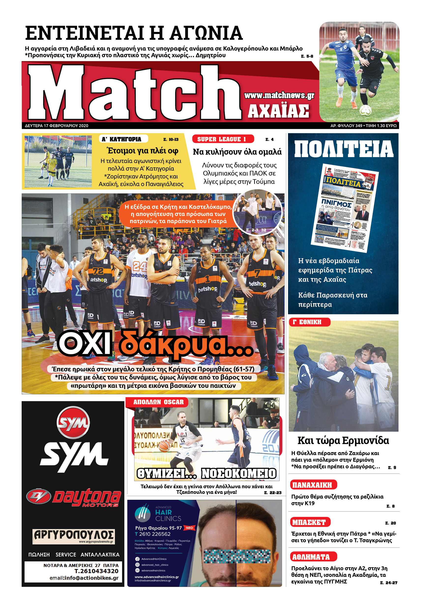 Κυκλοφορεί τη Δευτέρα η “Match” σε 1200 επιχειρήσεις και στα περίπτερα της Αχαΐας.